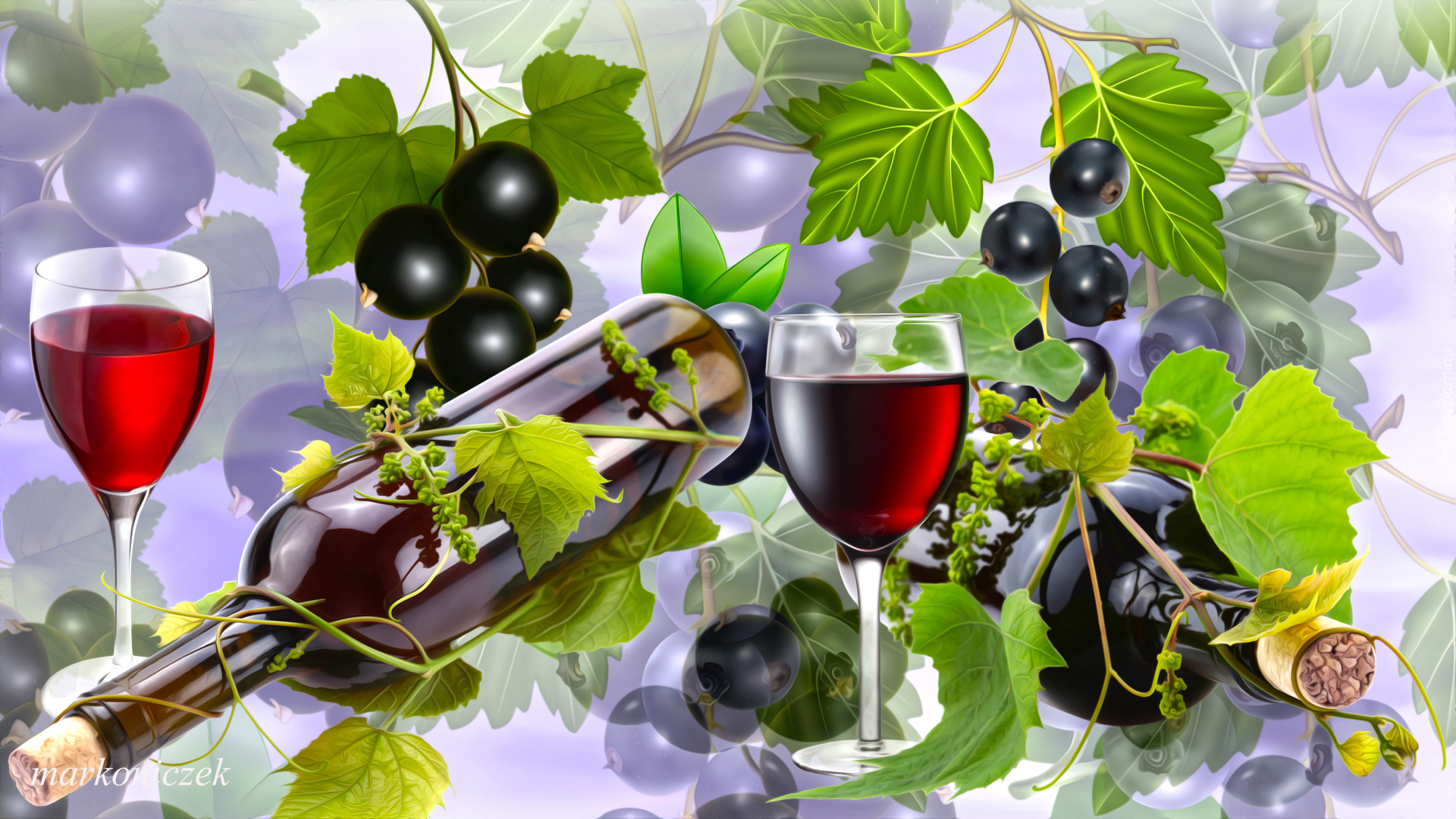 Edytor tapety: Butelka obok kieliszków i porzeczek