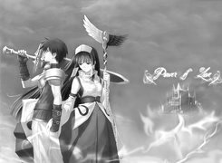 Edytor tapety: Shining Tears, kobieta, mężczyzna, postać, miecz, zamek