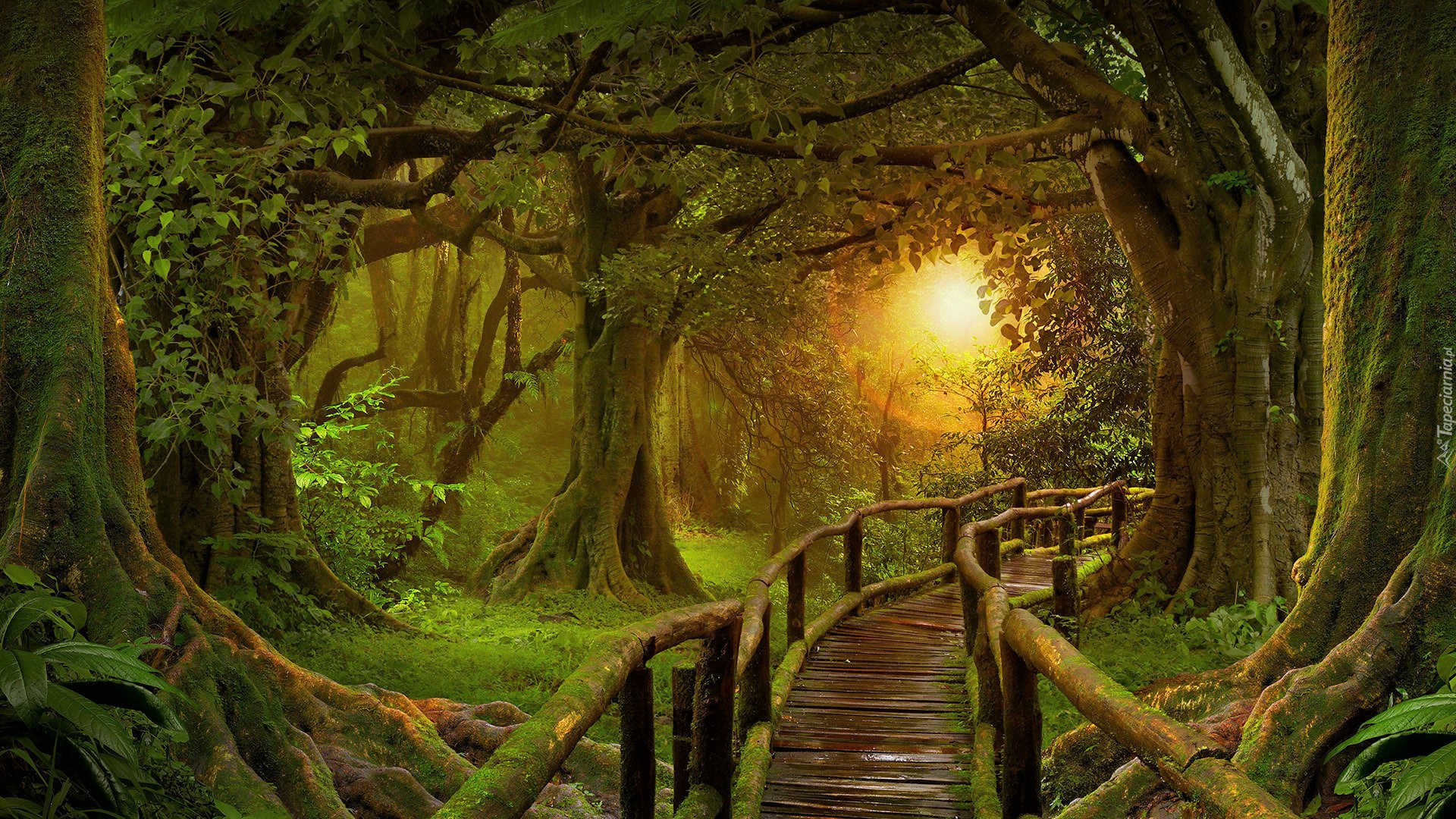 Edytor tapety: Drewniany pomost spacerowy w lesie