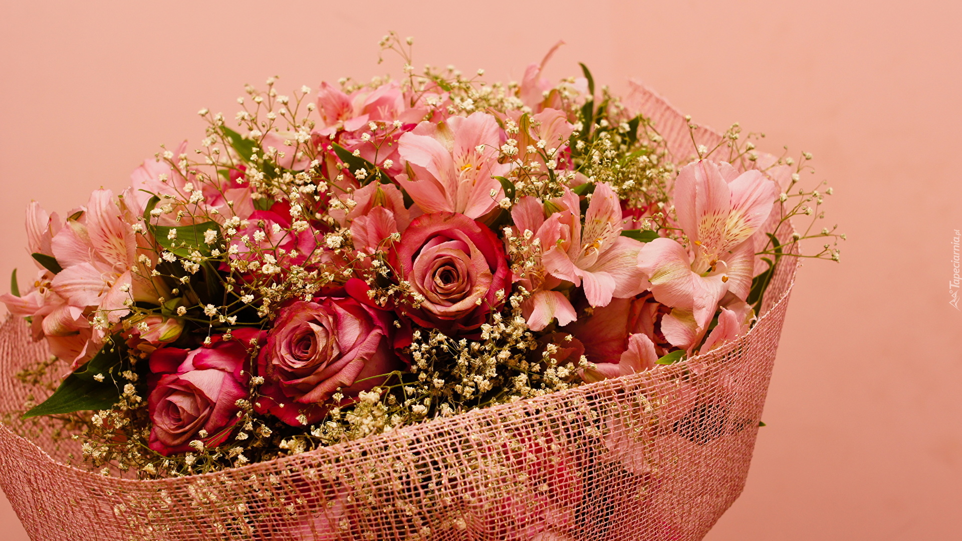 Edytor tapety: Alstremerie i róże w bukiecie