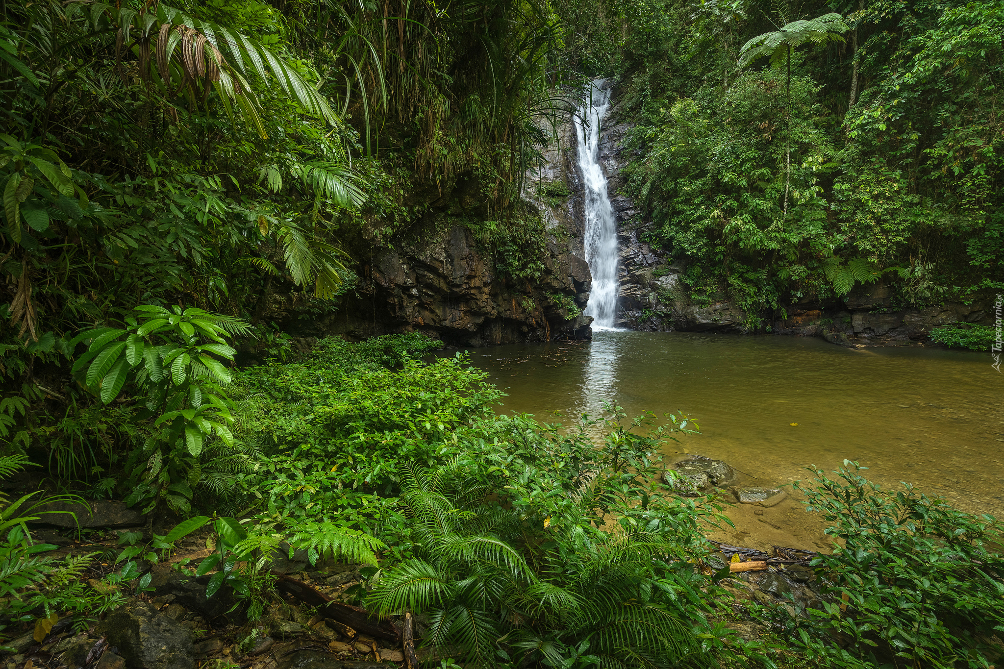 Edytor tapety: Zielona roślinność przy wodospadzie
