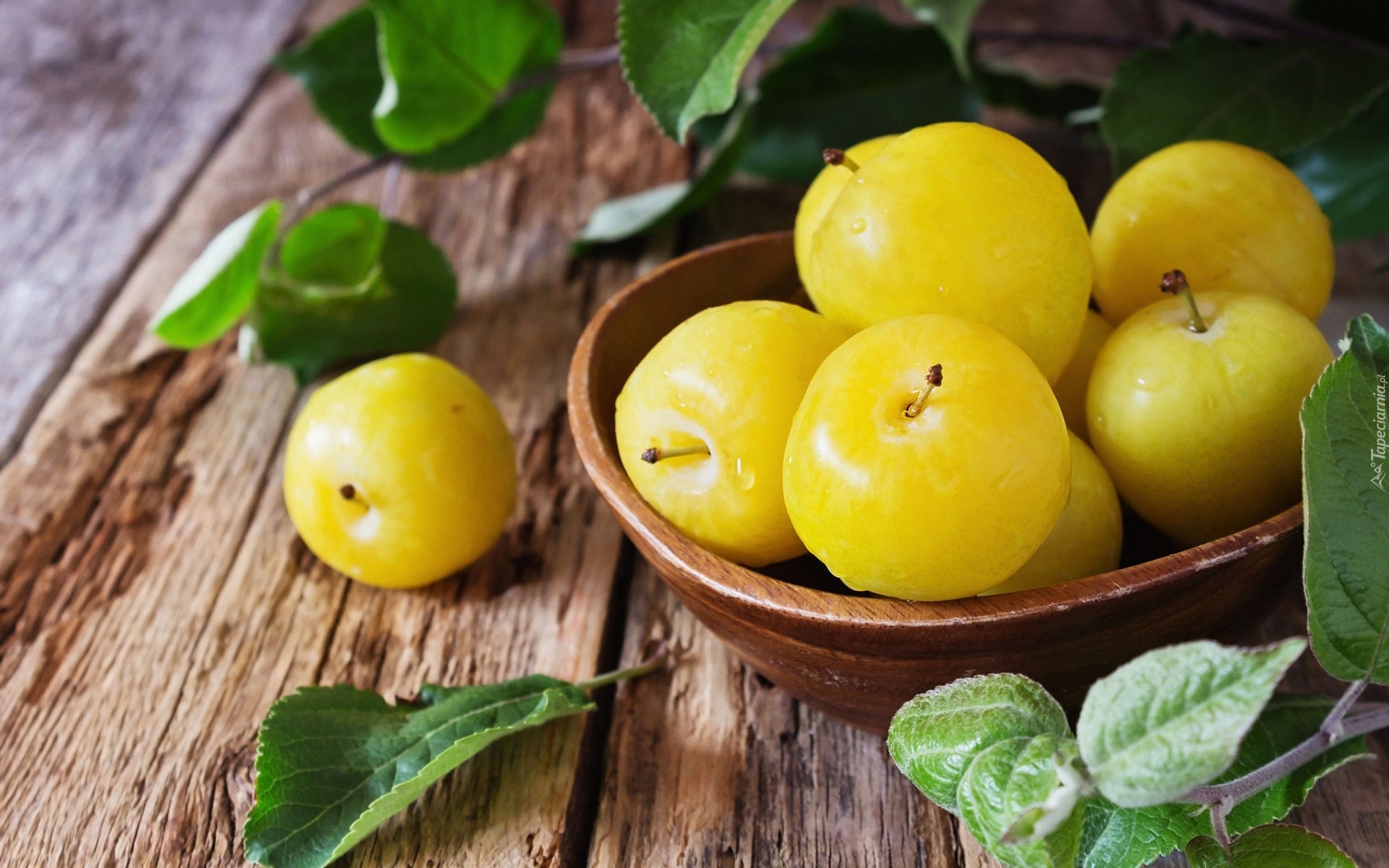 Edytor tapety: Żółte śliwki w misce