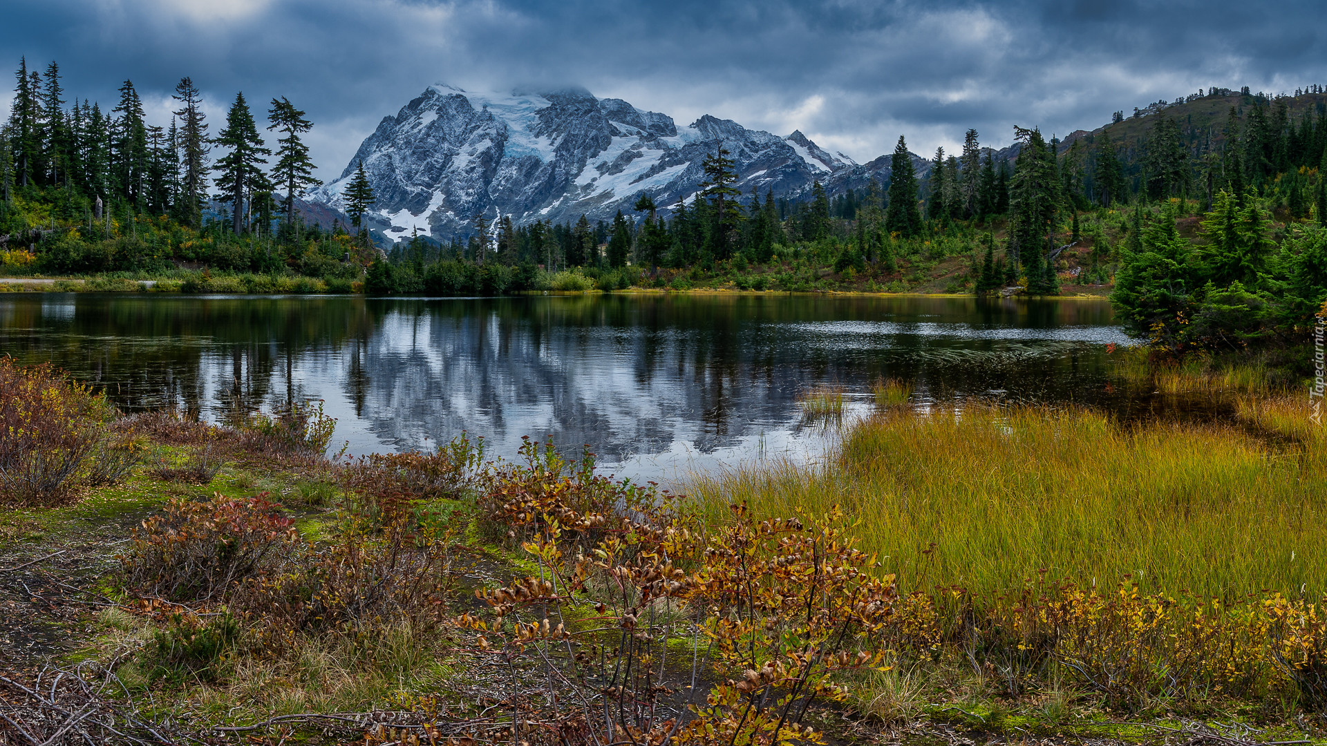 Edytor tapety: Jezioro Picture Lake na tle góry Mount Shuksan