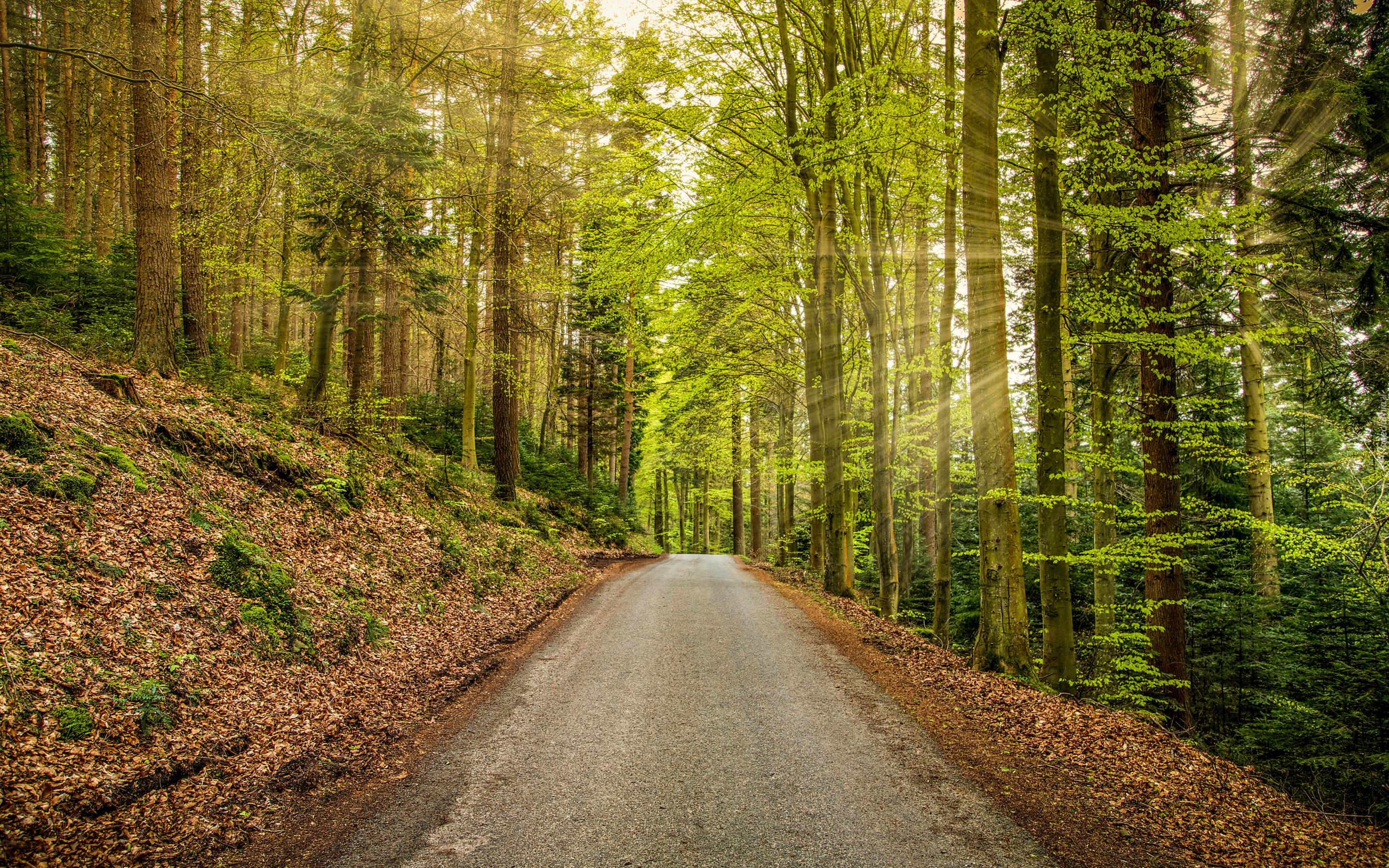 Edytor tapety: Droga przez las wiosenną porą