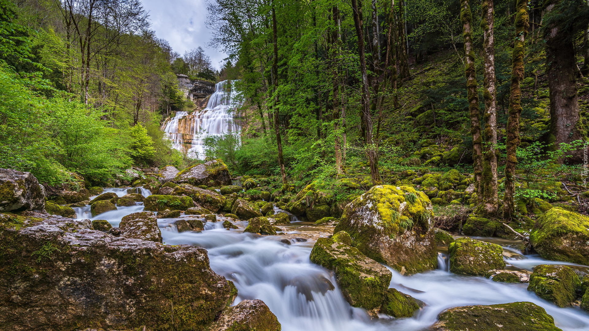 Edytor tapety: Kaskada na leśnej rzece Herisson we Francji
