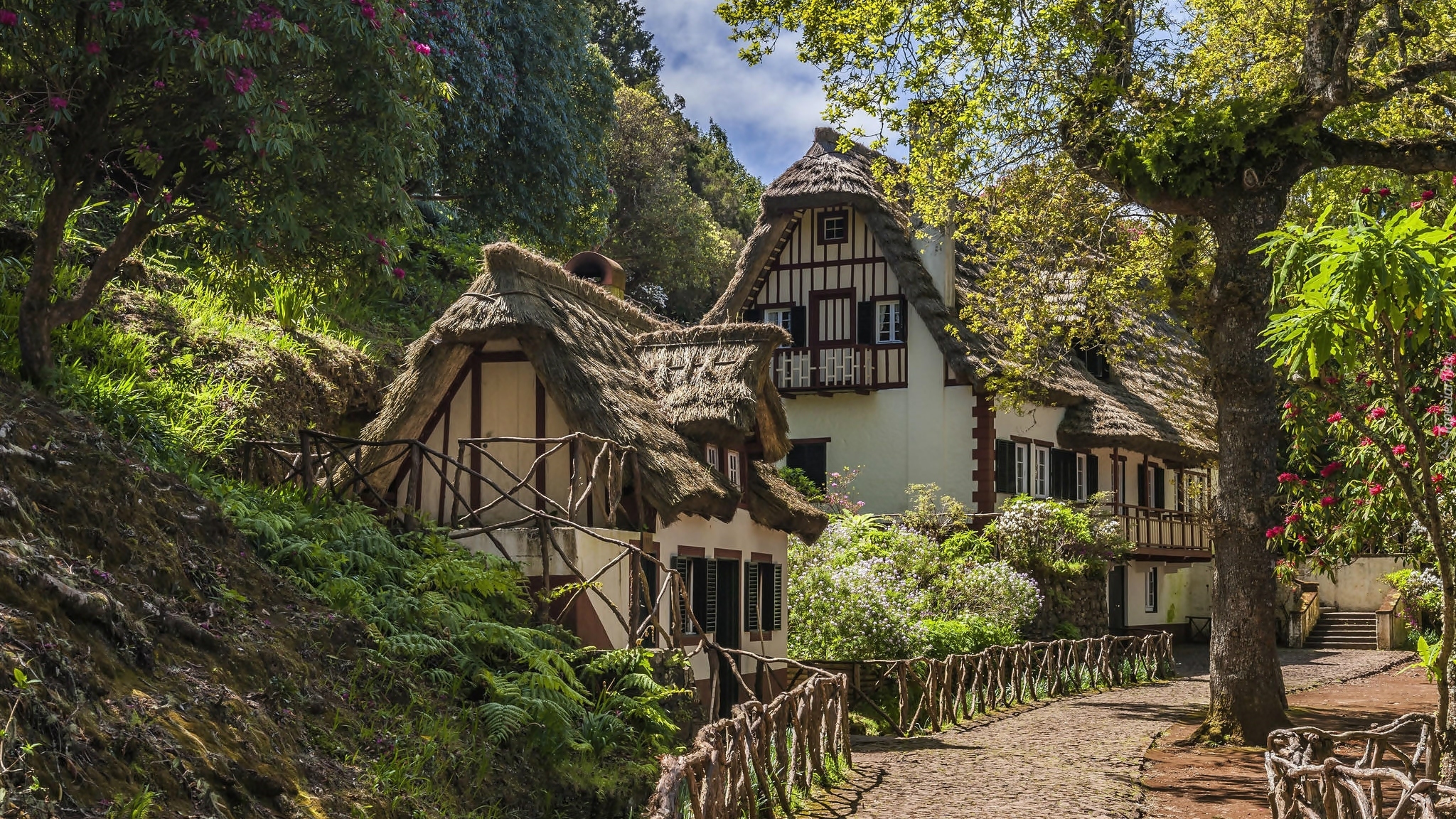 Edytor tapety: Domki z dachami pokrytymi strzechą