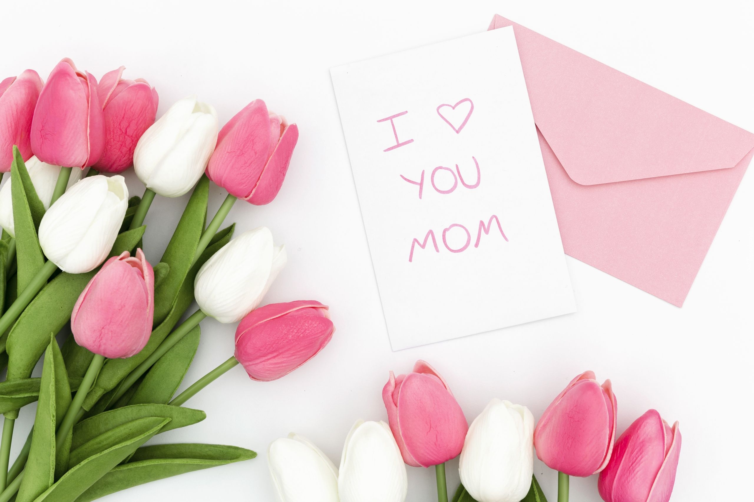 Edytor tapety: Tulipany i kartka na Dzień Matki