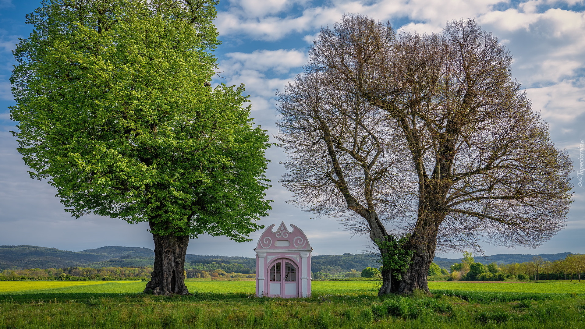 Edytor tapety: Kapliczka pomiędzy dwoma drzewami