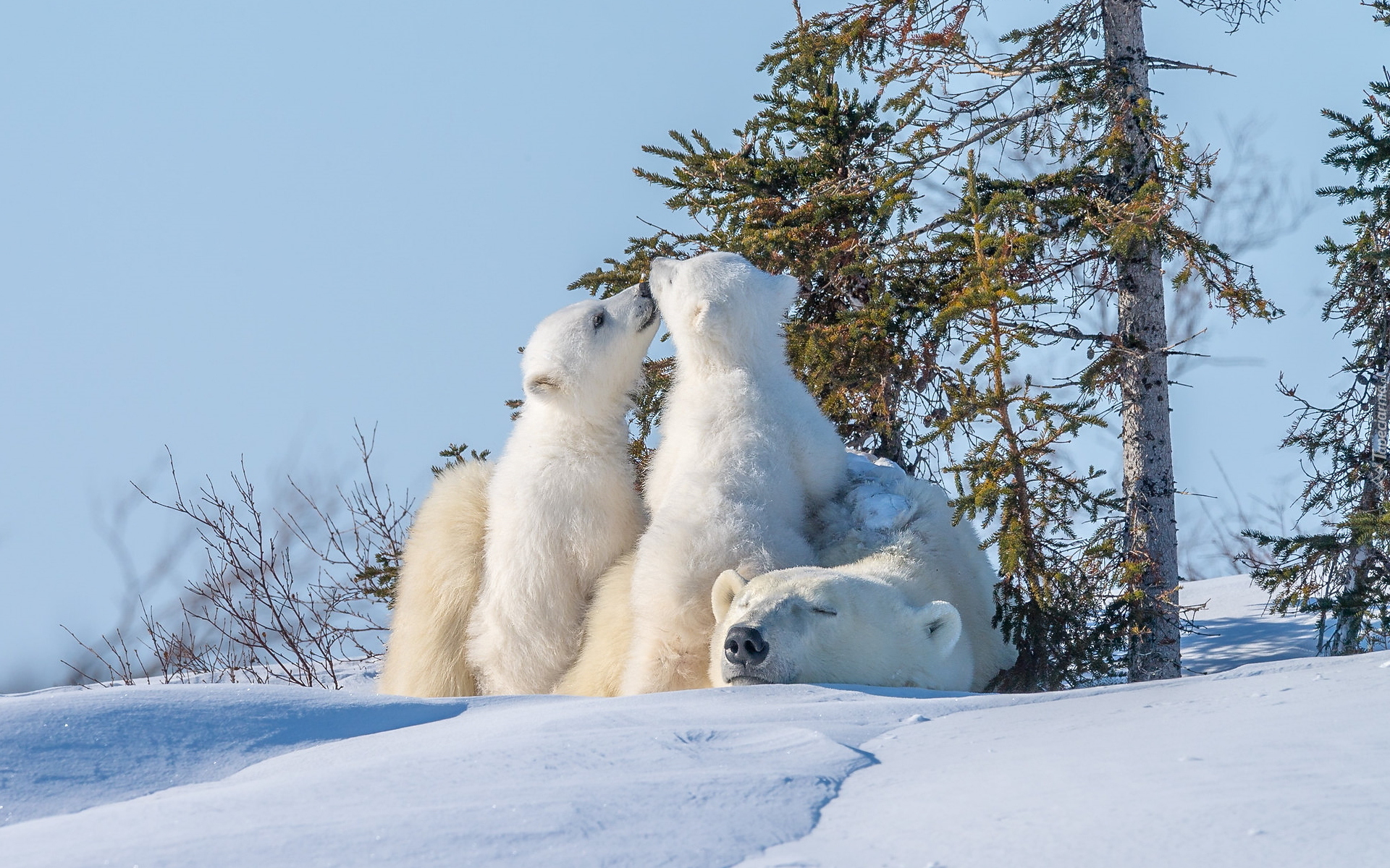Edytor tapety: Niedźwiedzica z dwoma młodymi