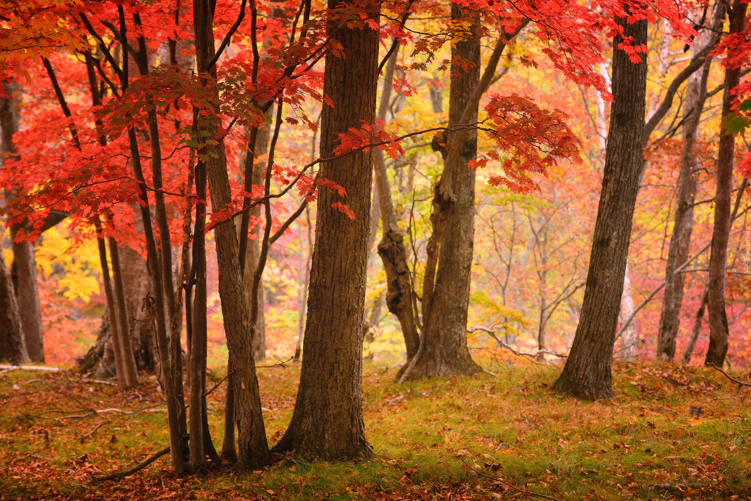 Edytor tapety: Kolorowe liście na jesiennych drzewach