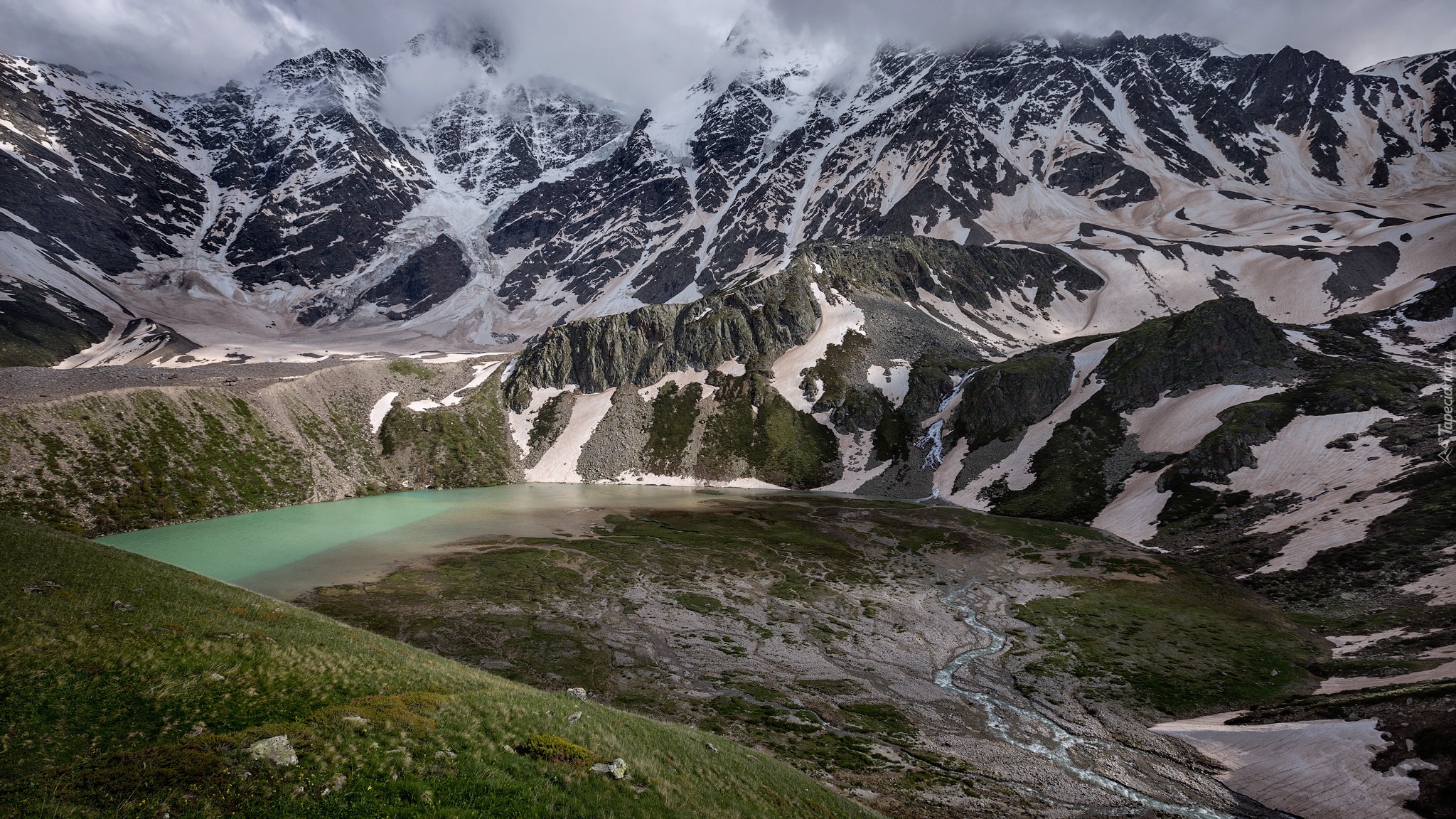 Edytor tapety: Jezioro Donguz Orun Kel w ośnieżonych górach Kaukazu