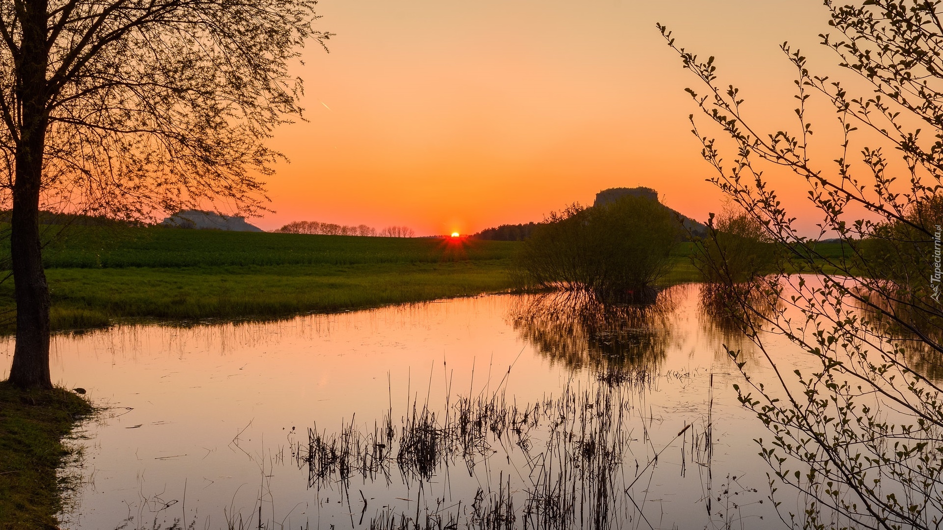 Edytor tapety: Staw w zachodzącym słońcu