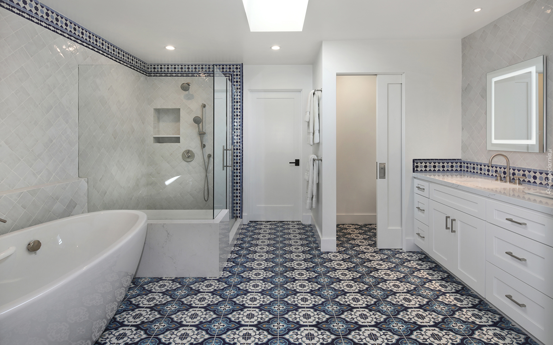 Edytor tapety: Biało-niebieska łazienka