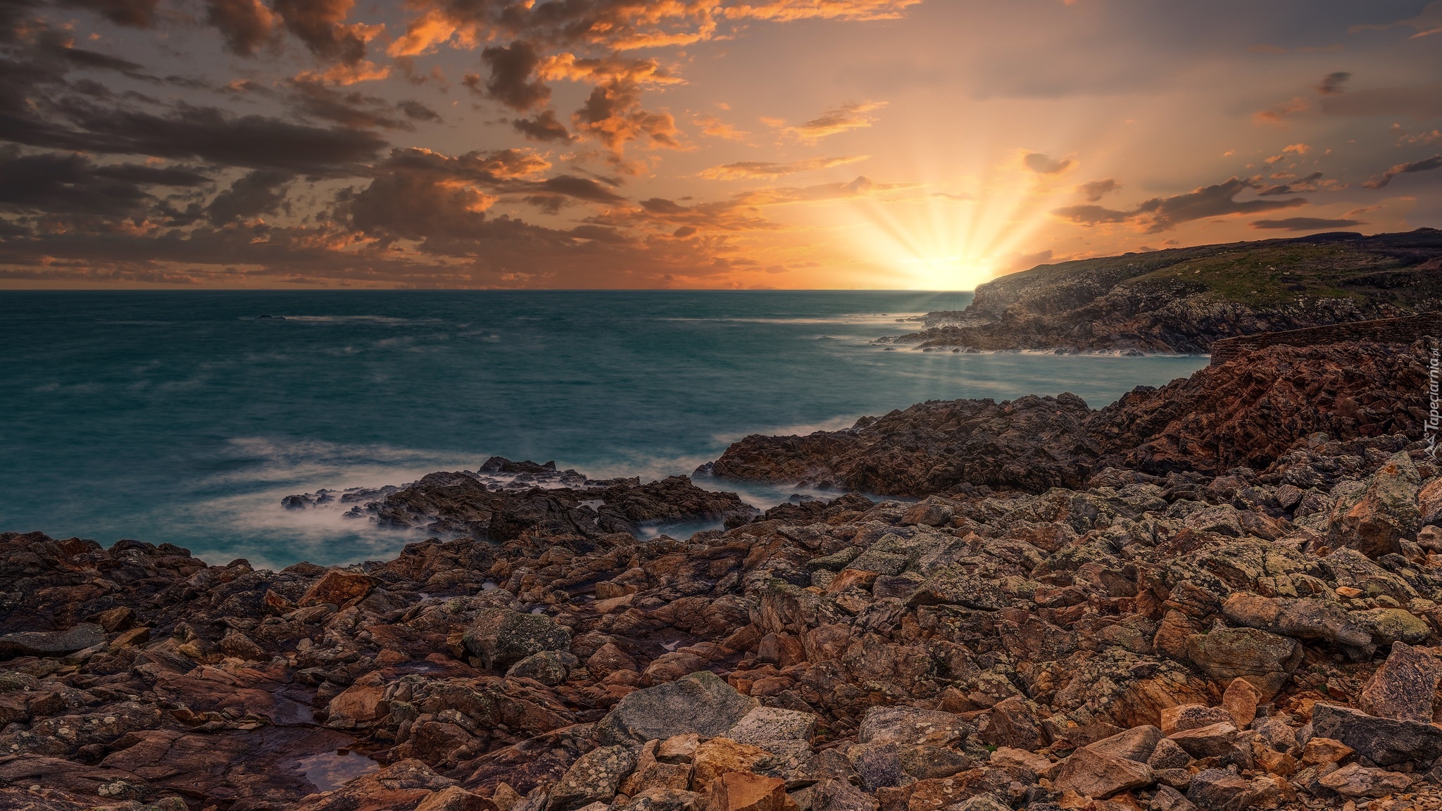 Edytor tapety: Zachód słońca nad małą Zatoką Porstarz w Bretanii