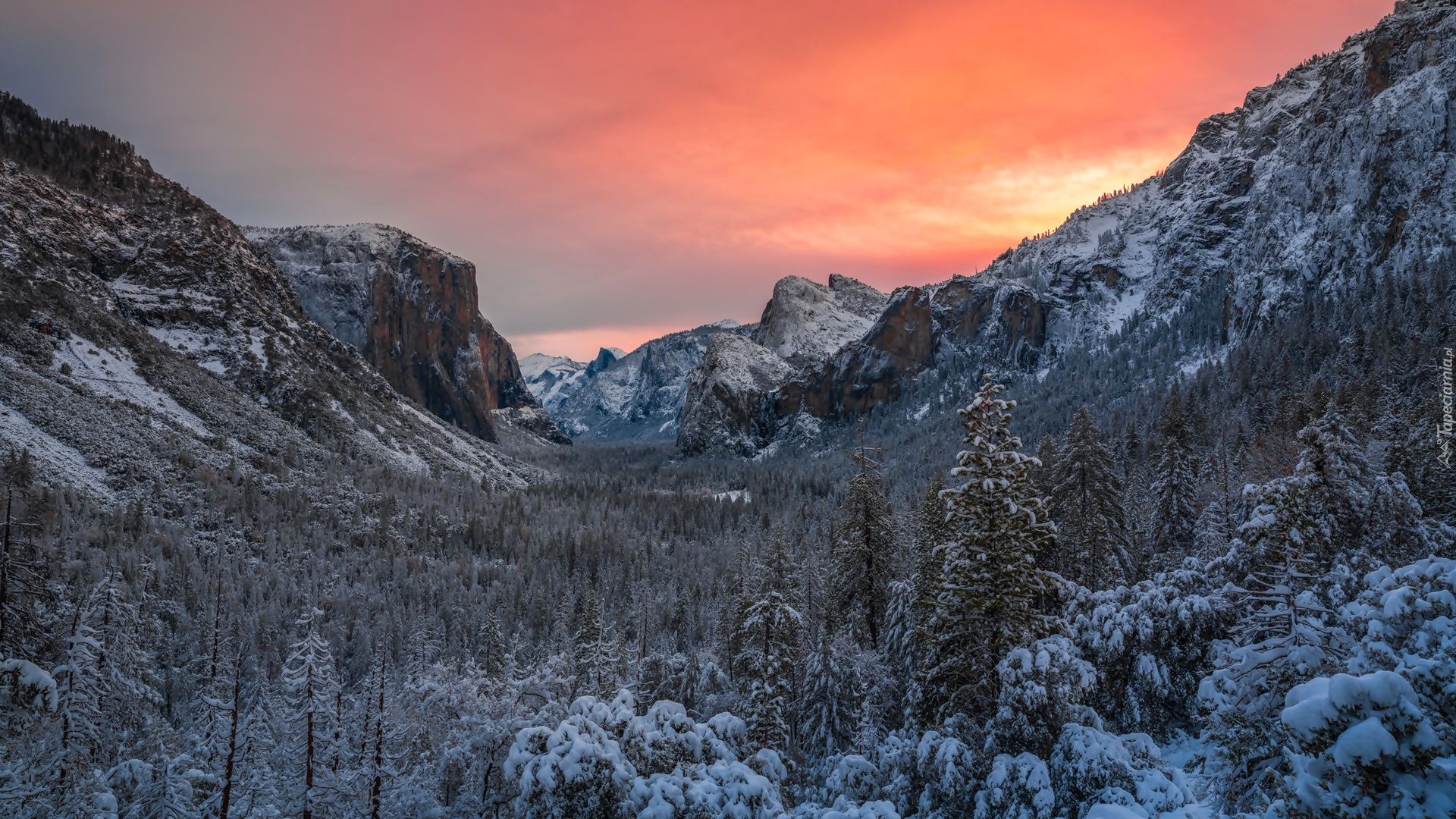 Edytor tapety: Ośnieżone drzewa w dolinie Yosemite Valley