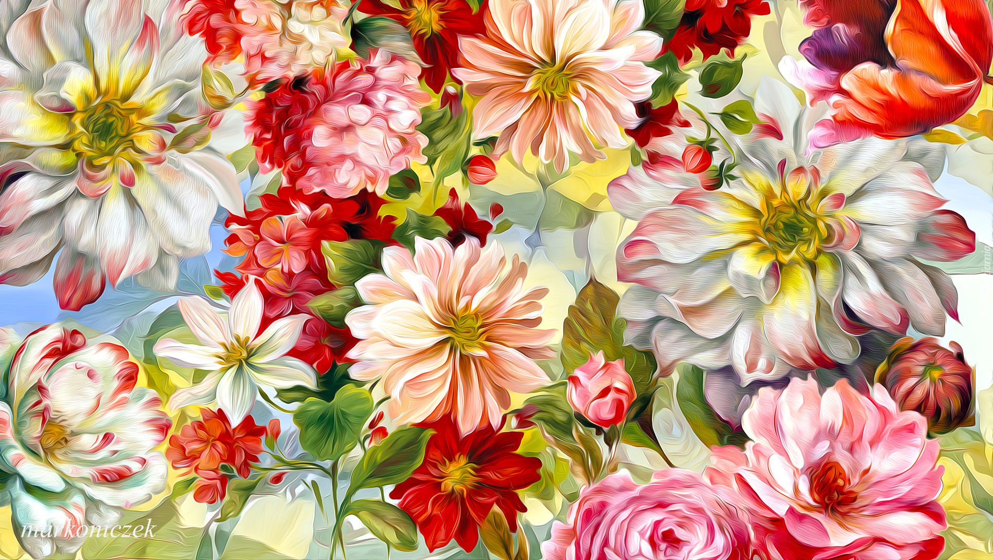Edytor tapety: Różne kolorowe kwiaty w grafice