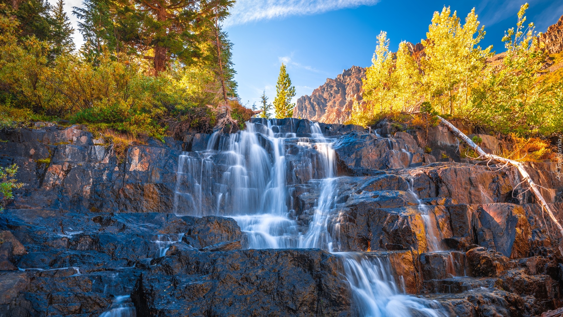 Edytor tapety: Krzewy i drzewa przy wodospadzie