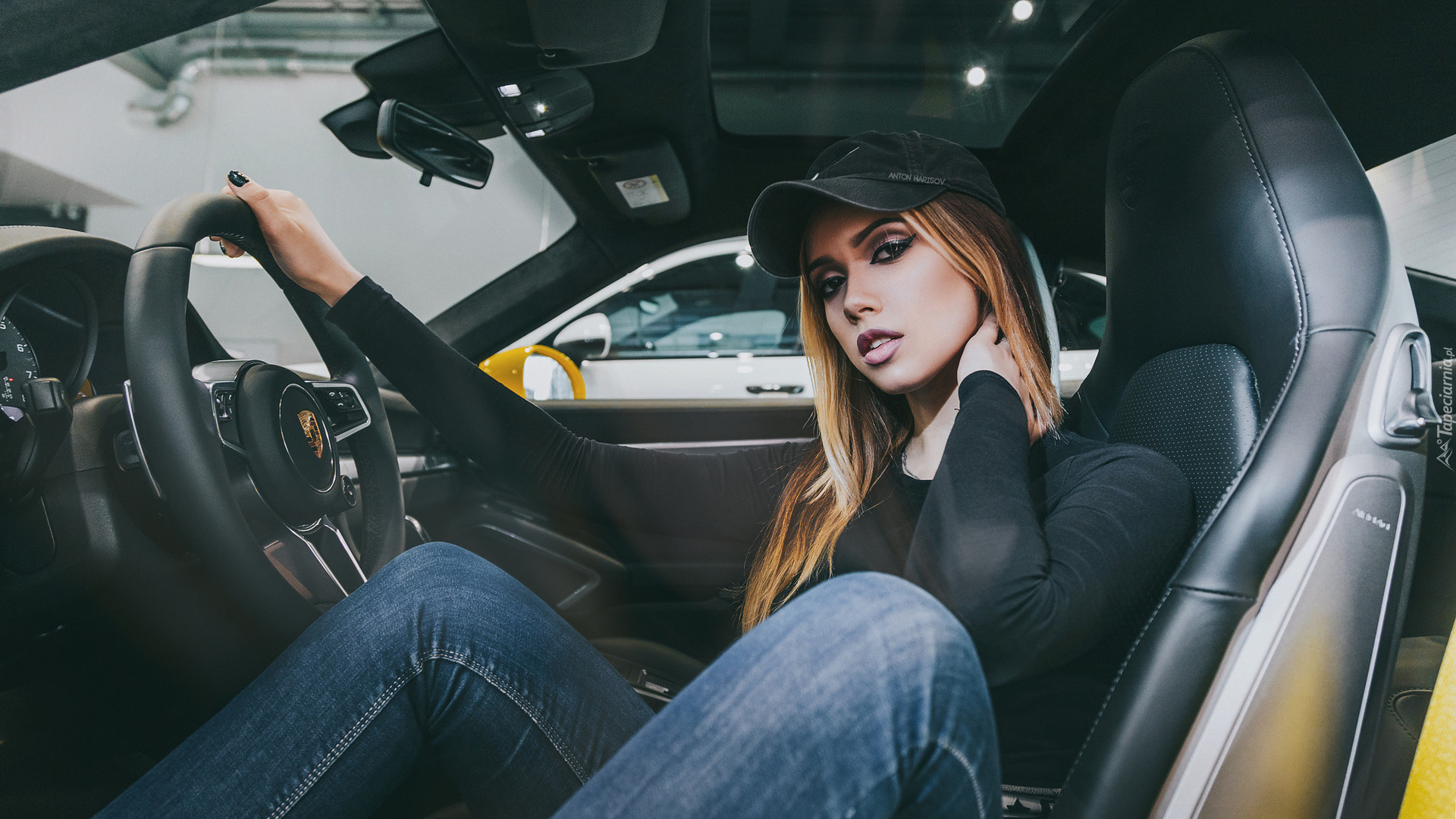 Edytor tapety: Kobieta w czapce przy kierownicy