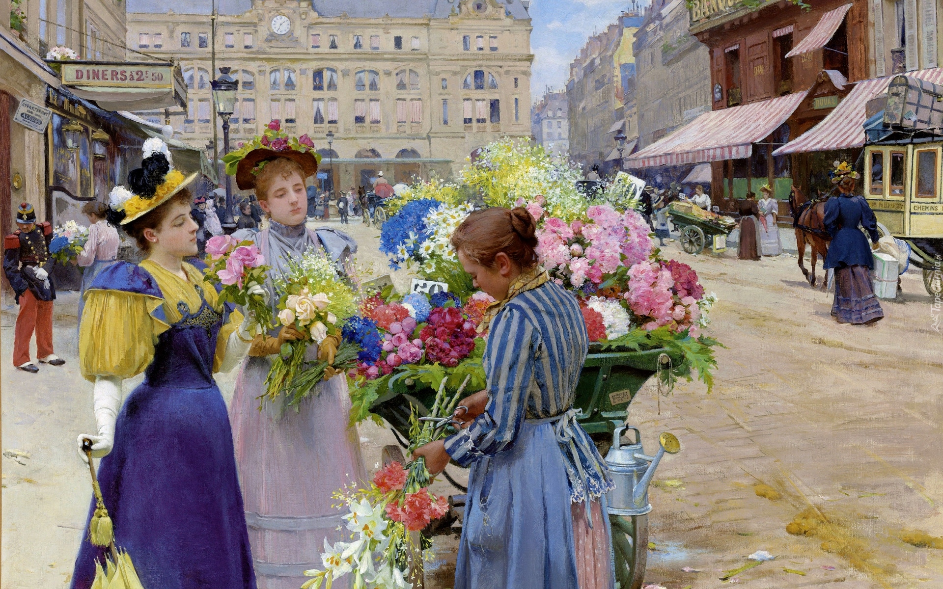 Edytor tapety: Kwiaciarka na obrazie Louis Marie de Schryver