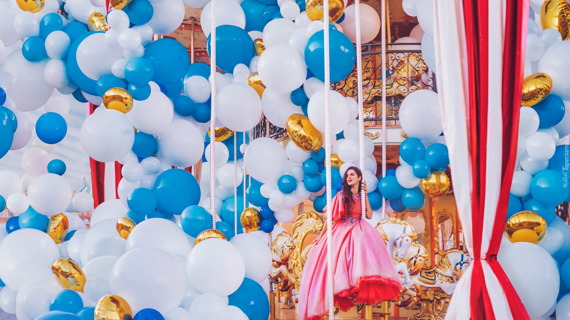 Edytor tapety: Kobieta pośród baloników na karuzeli