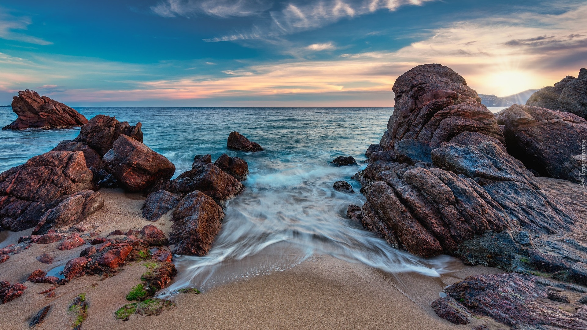 Edytor tapety: Skały na piaszczystym brzegu morza