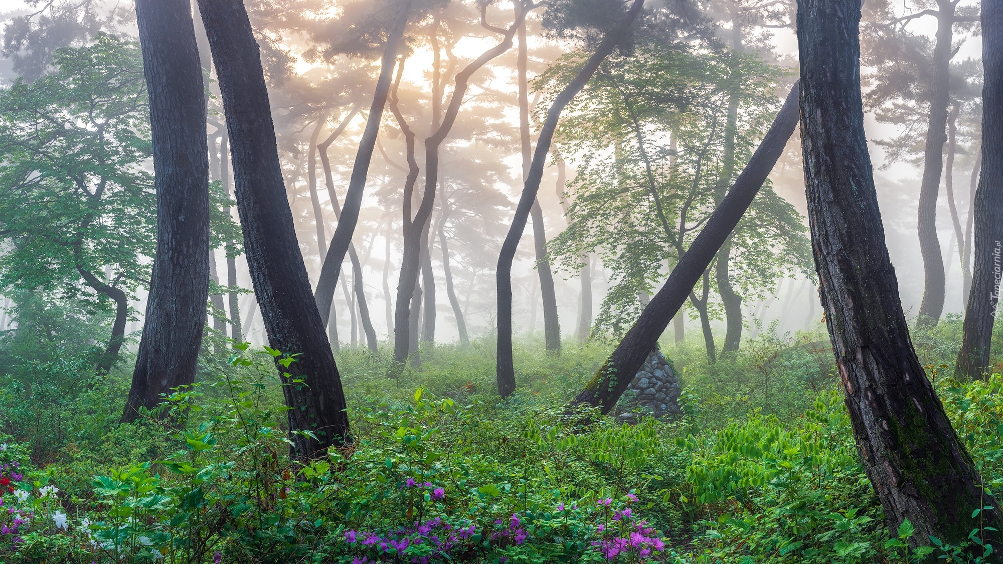 Edytor tapety: Kwiaty i rośliny w zamglonym lesie