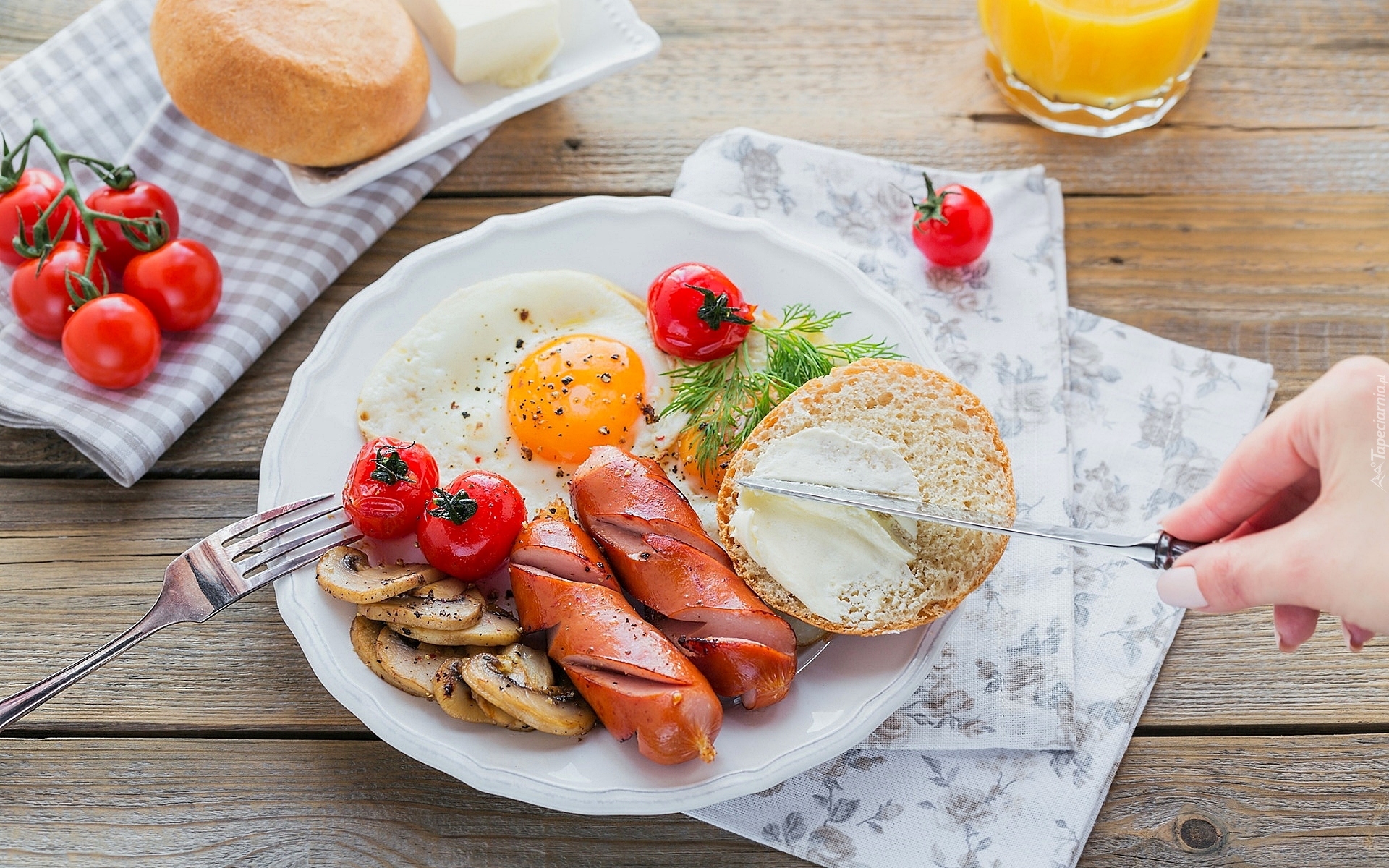 Edytor tapety: Sadzone jajko i parówki na śniadanie