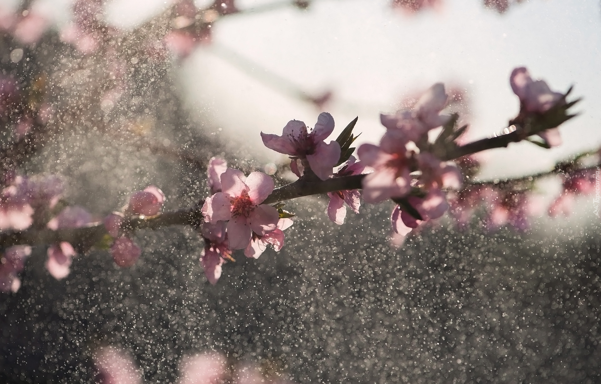Edytor tapety: Gałązka drzewa owocowego w deszczu