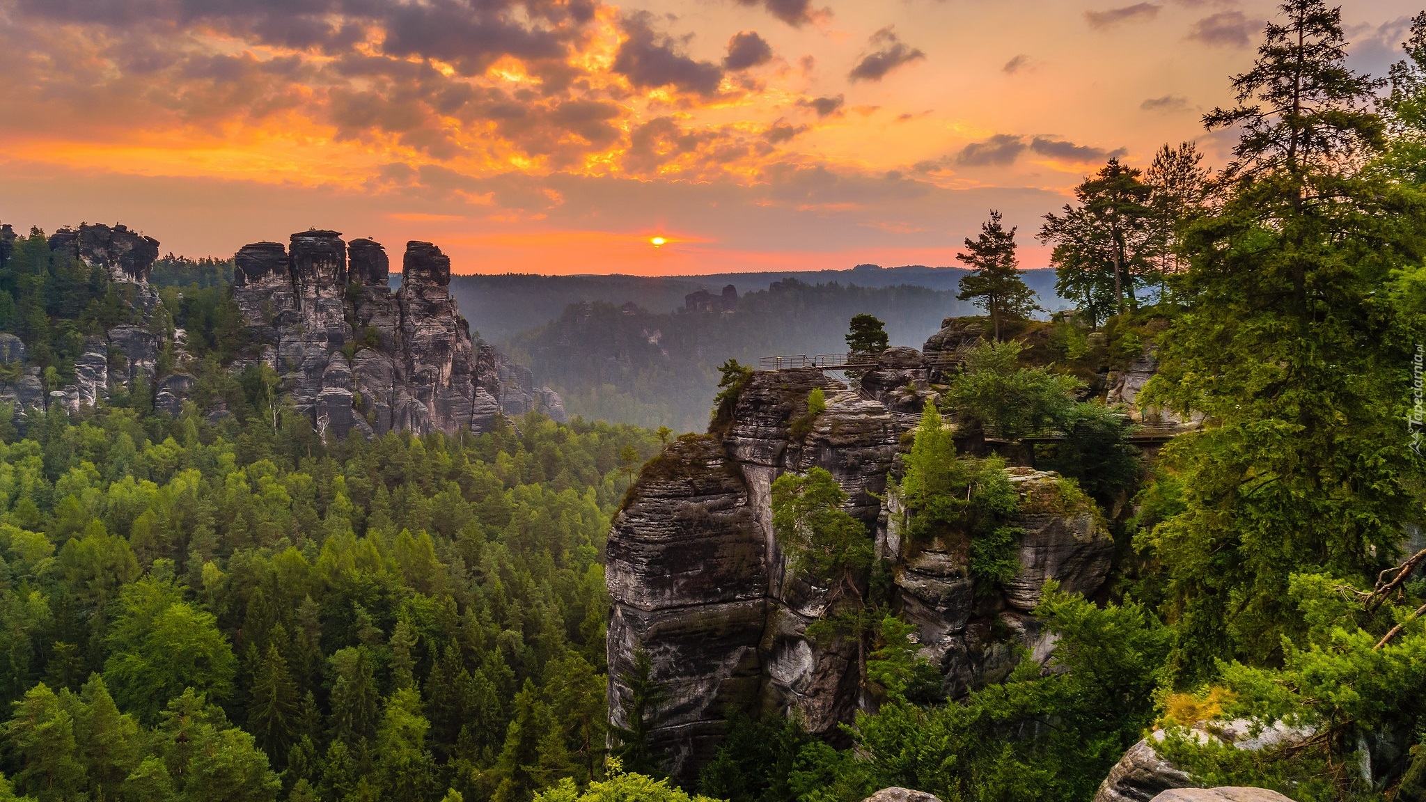 Edytor tapety: Park Narodowy Saskiej Szwajcarii o zachodzie słońca