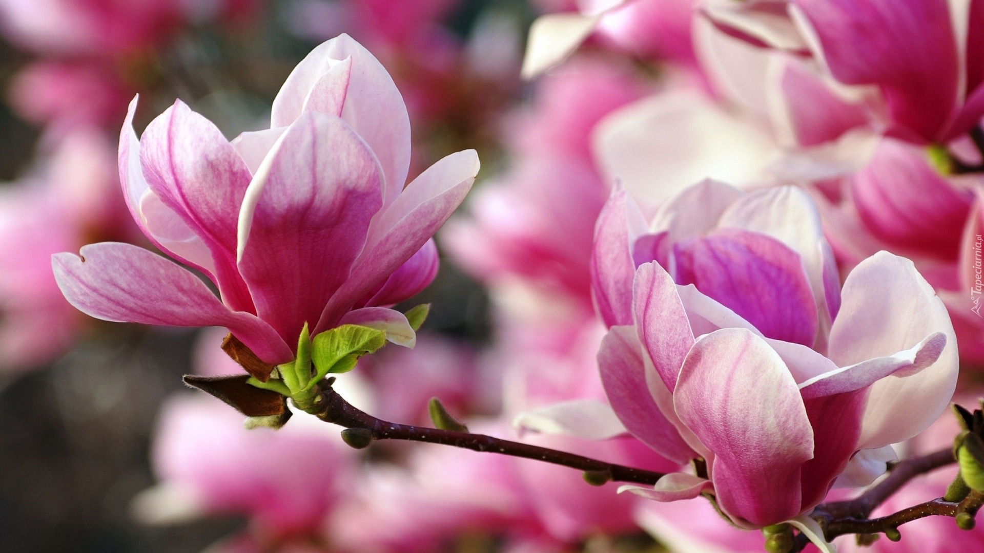 Edytor tapety: Różowe kwiaty magnolii w zbliżeniu