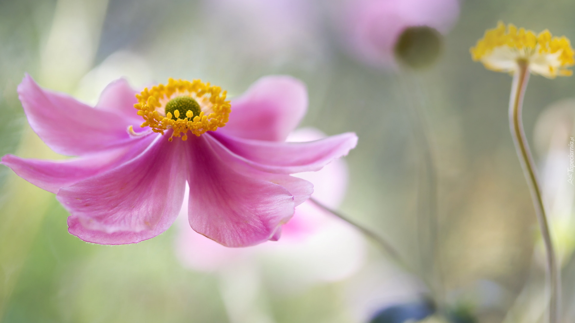 Edytor tapety: Rozwinięty różowy zawilec japoński