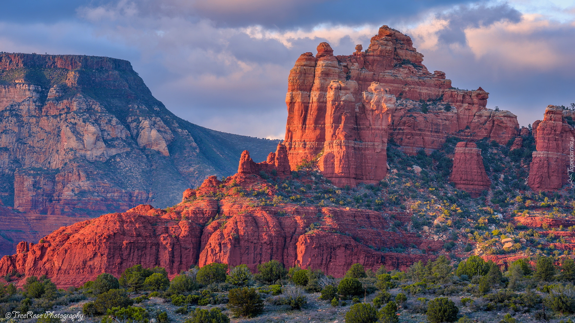 Edytor tapety: Rozświetlone czerwone skały w Arizonie