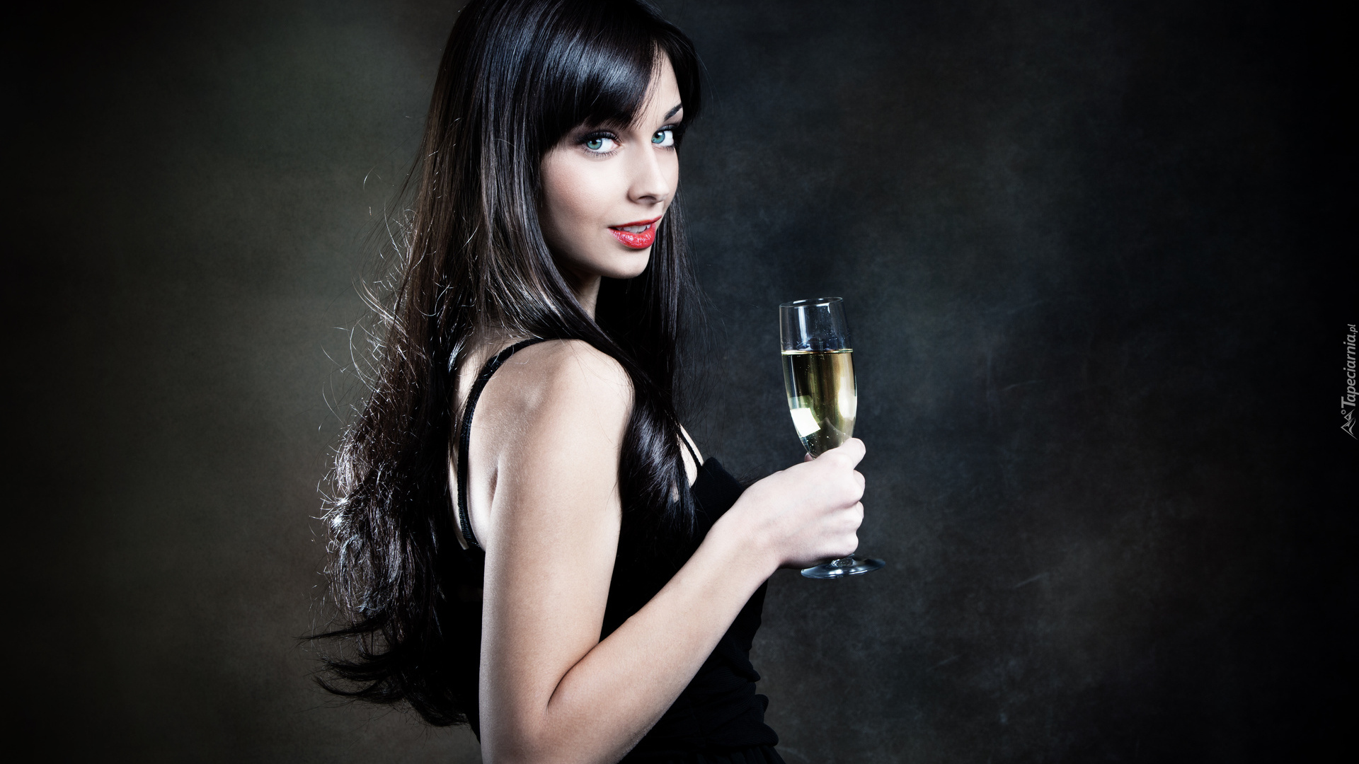 Edytor tapety: Brunetka z kieliszkiem szampana