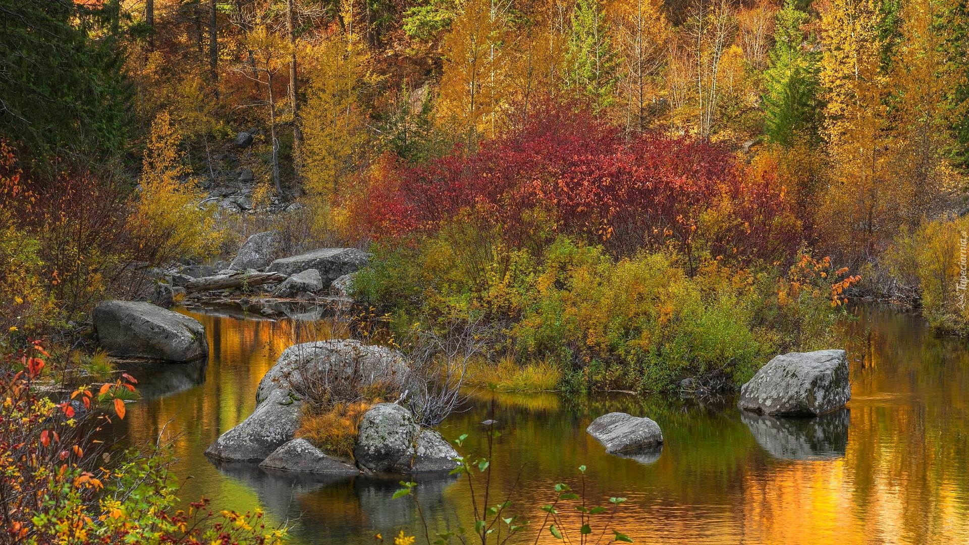 Edytor tapety: Jesienne drzewa nad rzeką w lesie