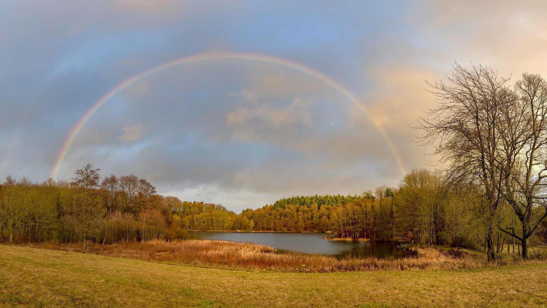 Edytor tapety: Tęcza nad jeziorem Holzmaar
