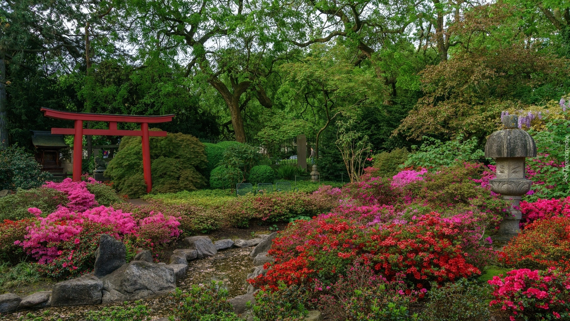 Edytor tapety: Azalie nad strumieniem w ogrodzie japońskim