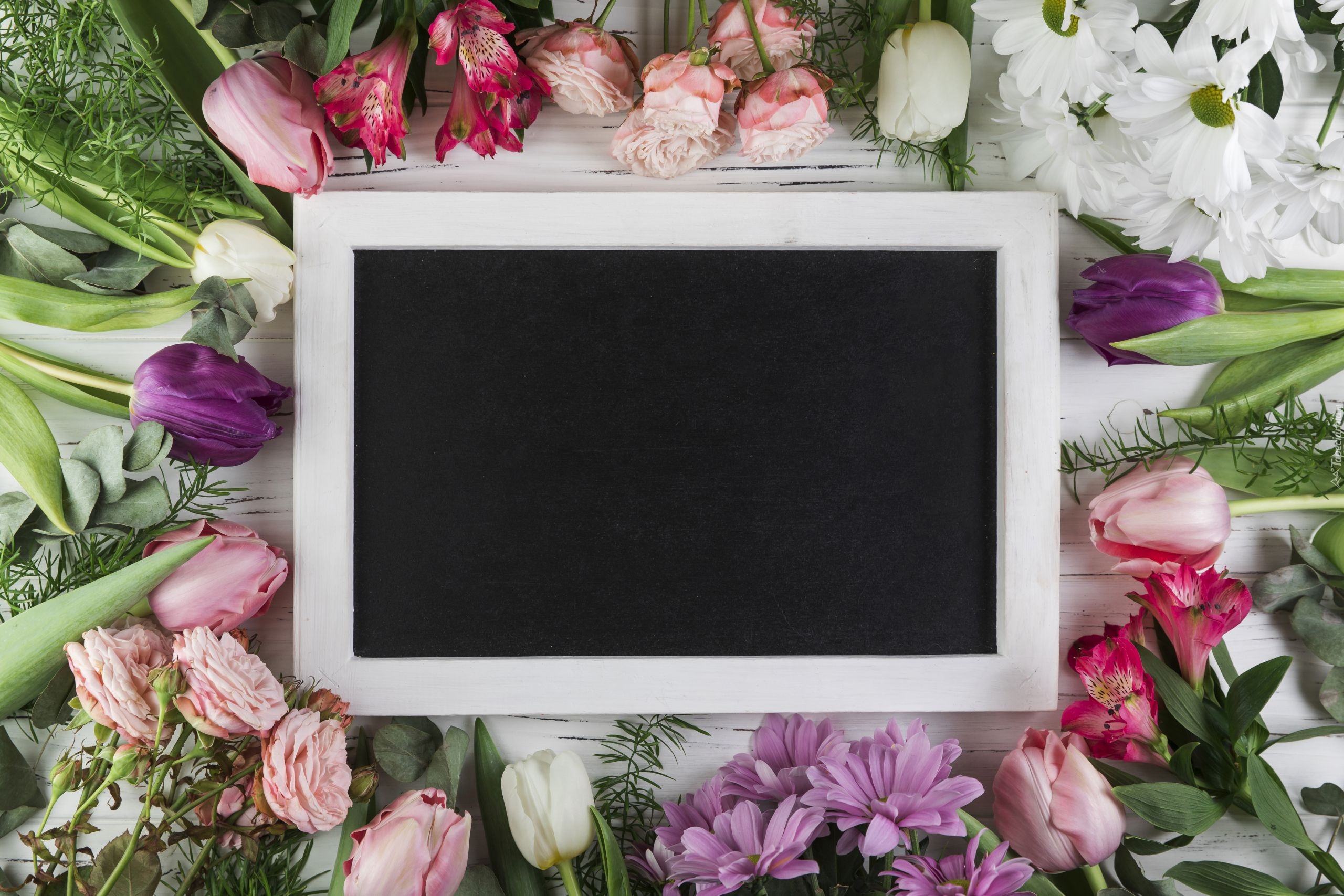 Edytor tapety: Różnorodne kwiaty wokół ramki