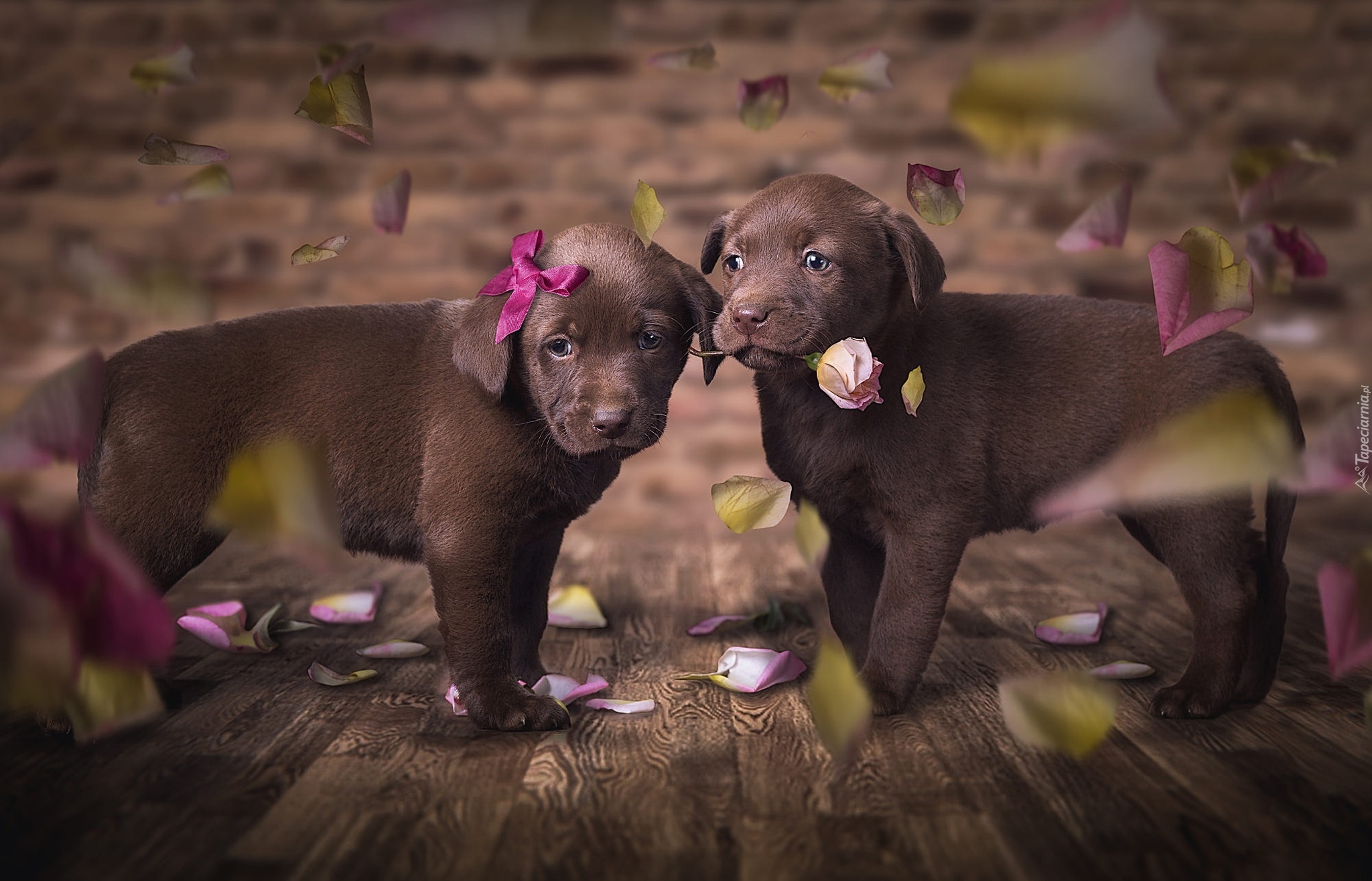 Edytor tapety: Dwa szczeniaki labradory retrievery