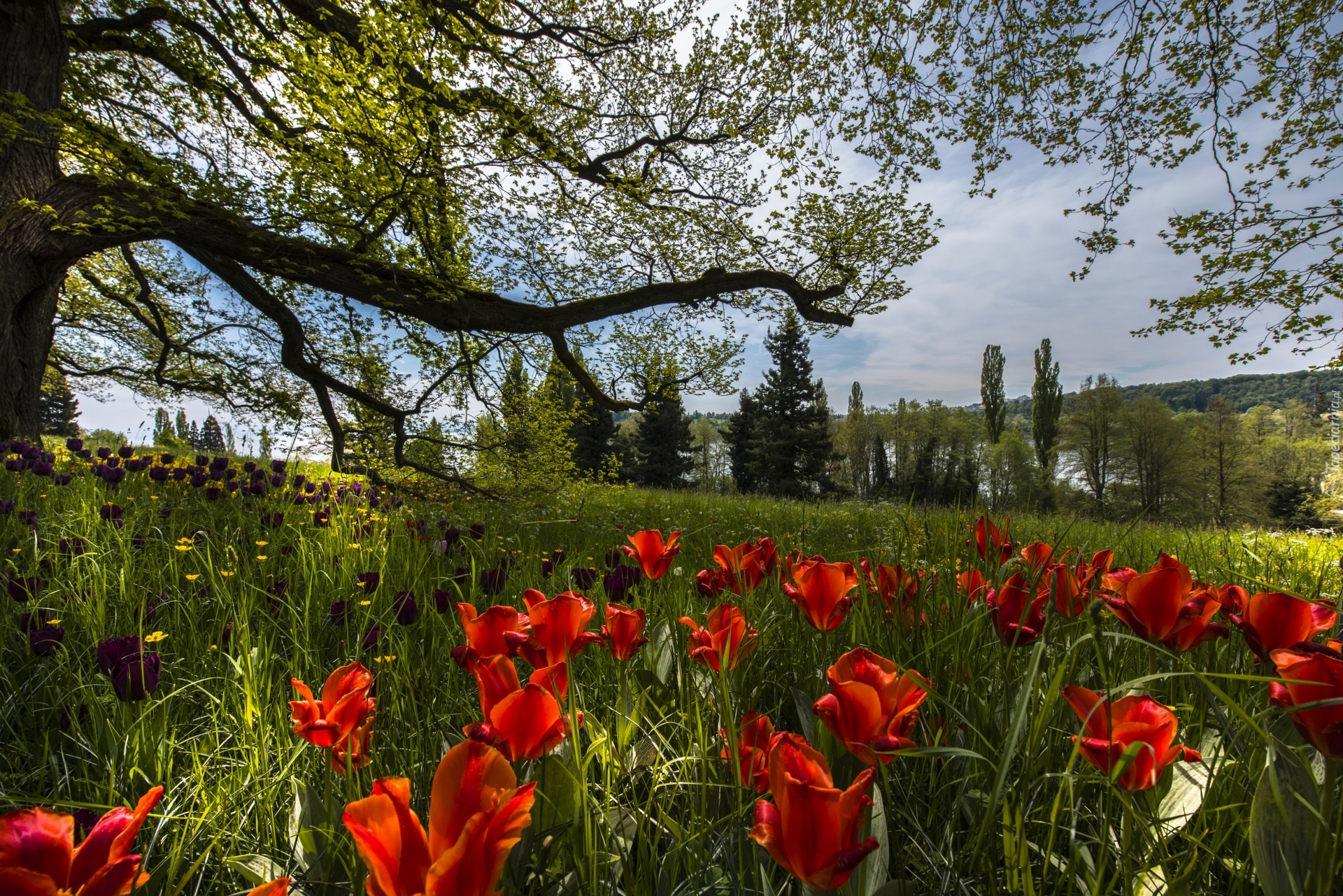 Edytor tapety: Tulipany na wiosennej łące