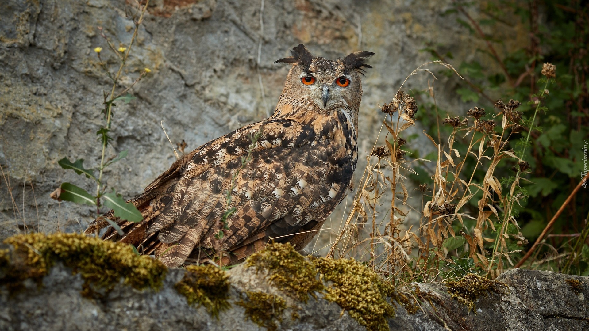 Edytor tapety: Puchacz zwyczajny na skale