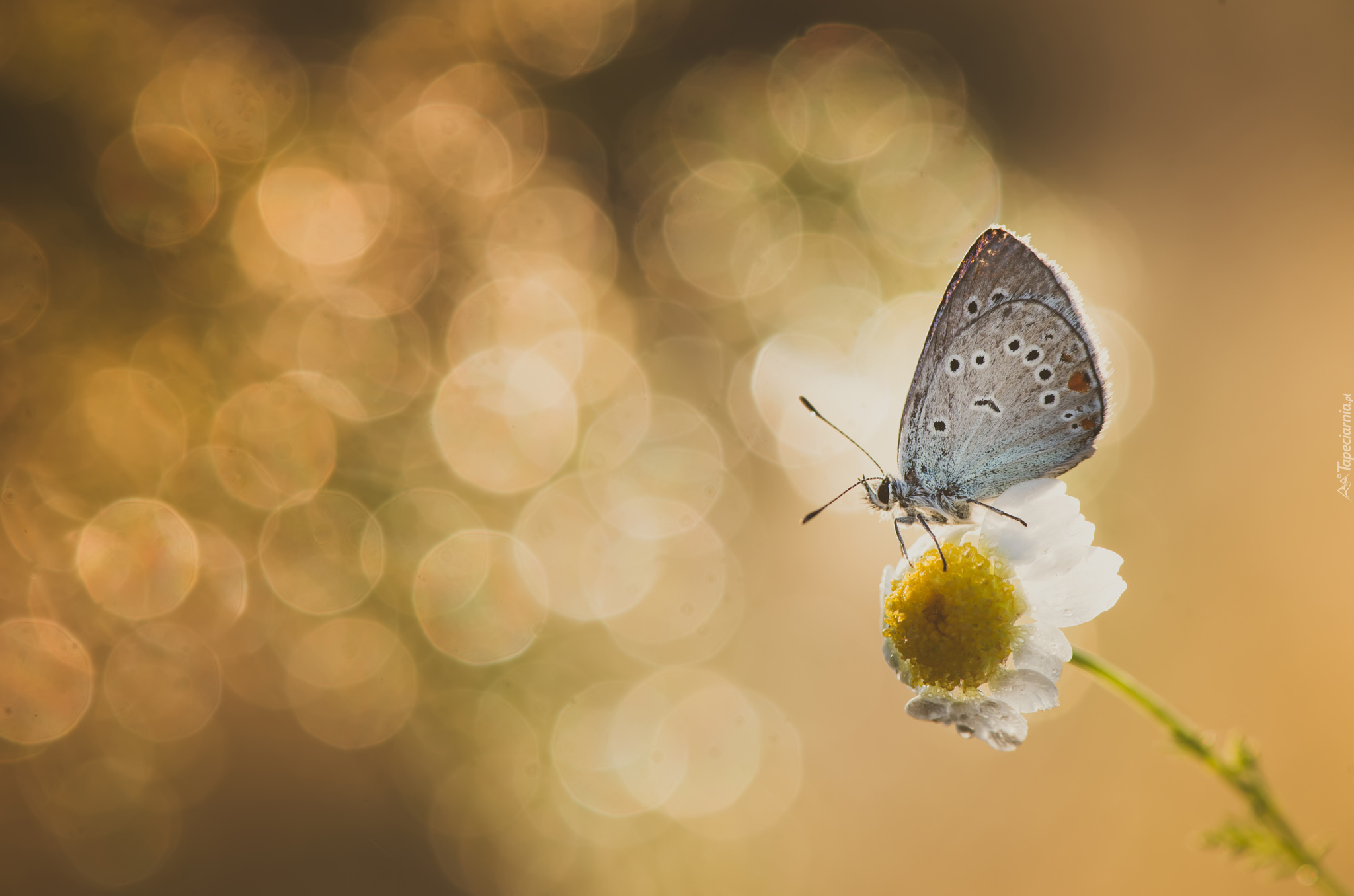 Edytor tapety: Modraszek ikar na kwiatku rumianku