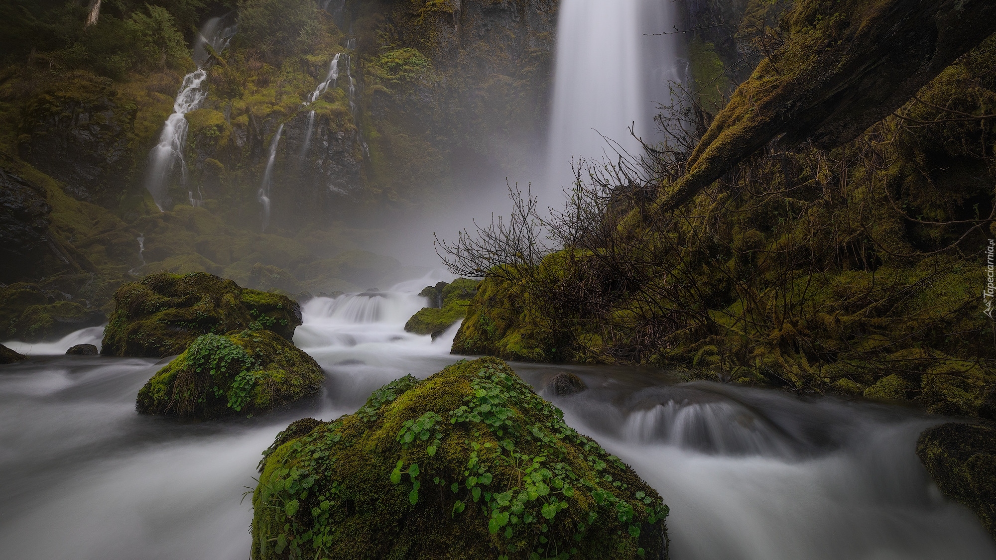 Edytor tapety: Omszałe skały i kamienie przy wodospadzie