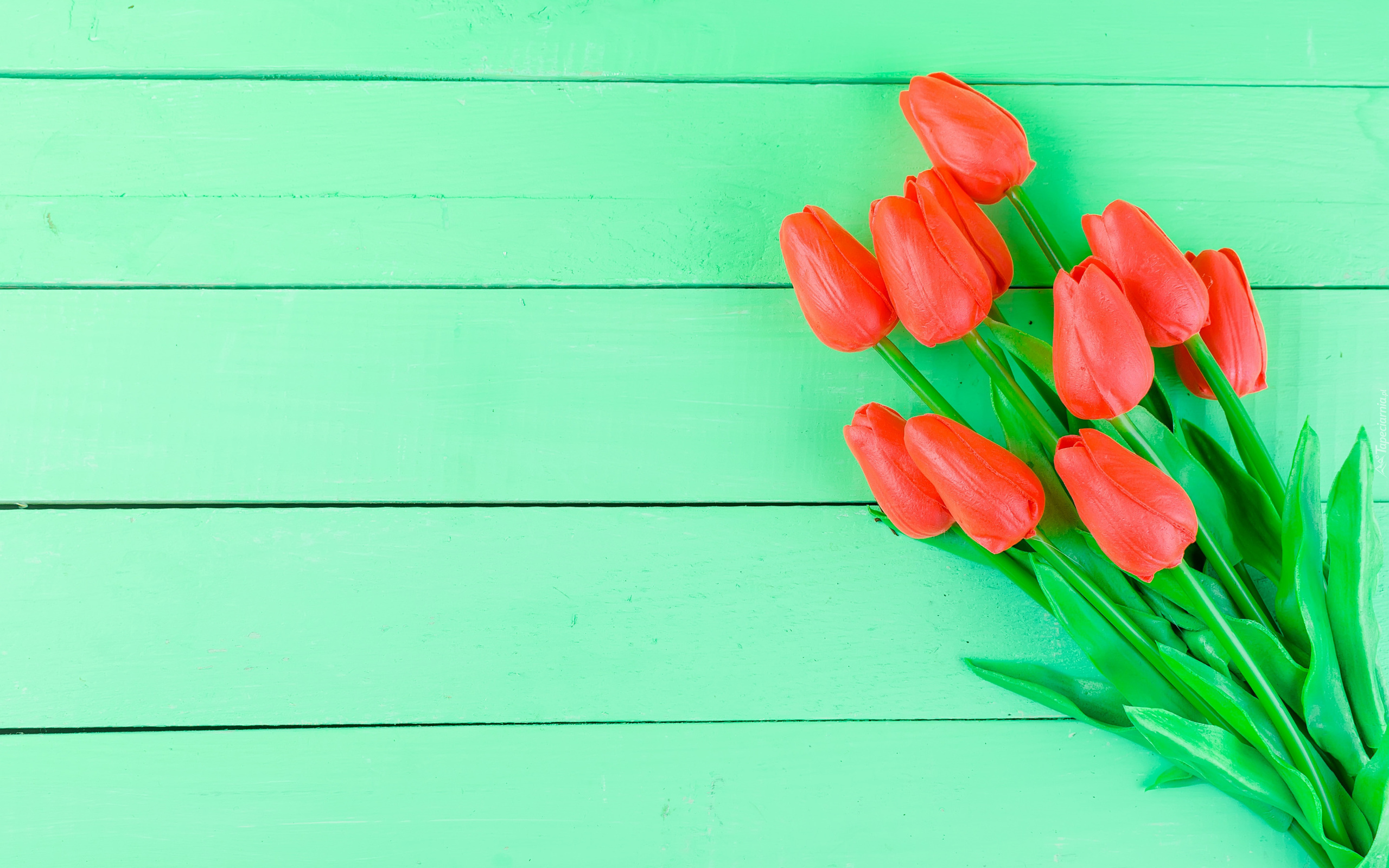 Edytor tapety: Tulipany na zielonych deskach