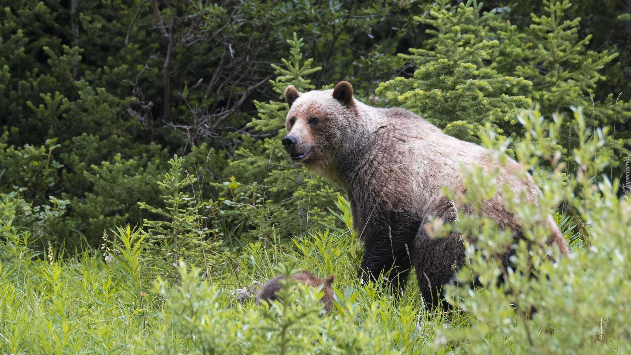 Edytor tapety: Niedźwiedź brunatny na skraju lasu