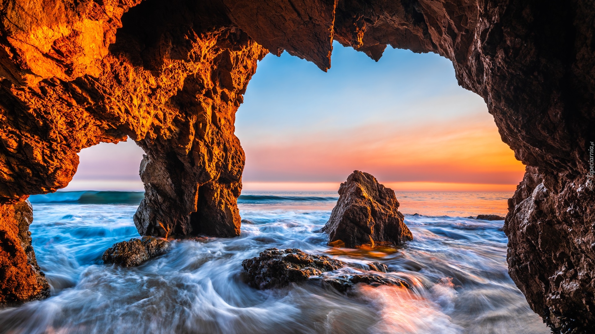 Edytor tapety: Jaskinia na plaży El Matador Beach w Malibu