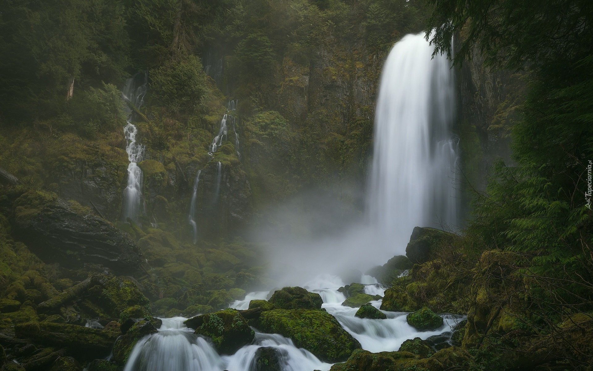 Edytor tapety: Kamienie na tle wodospadu i skał
