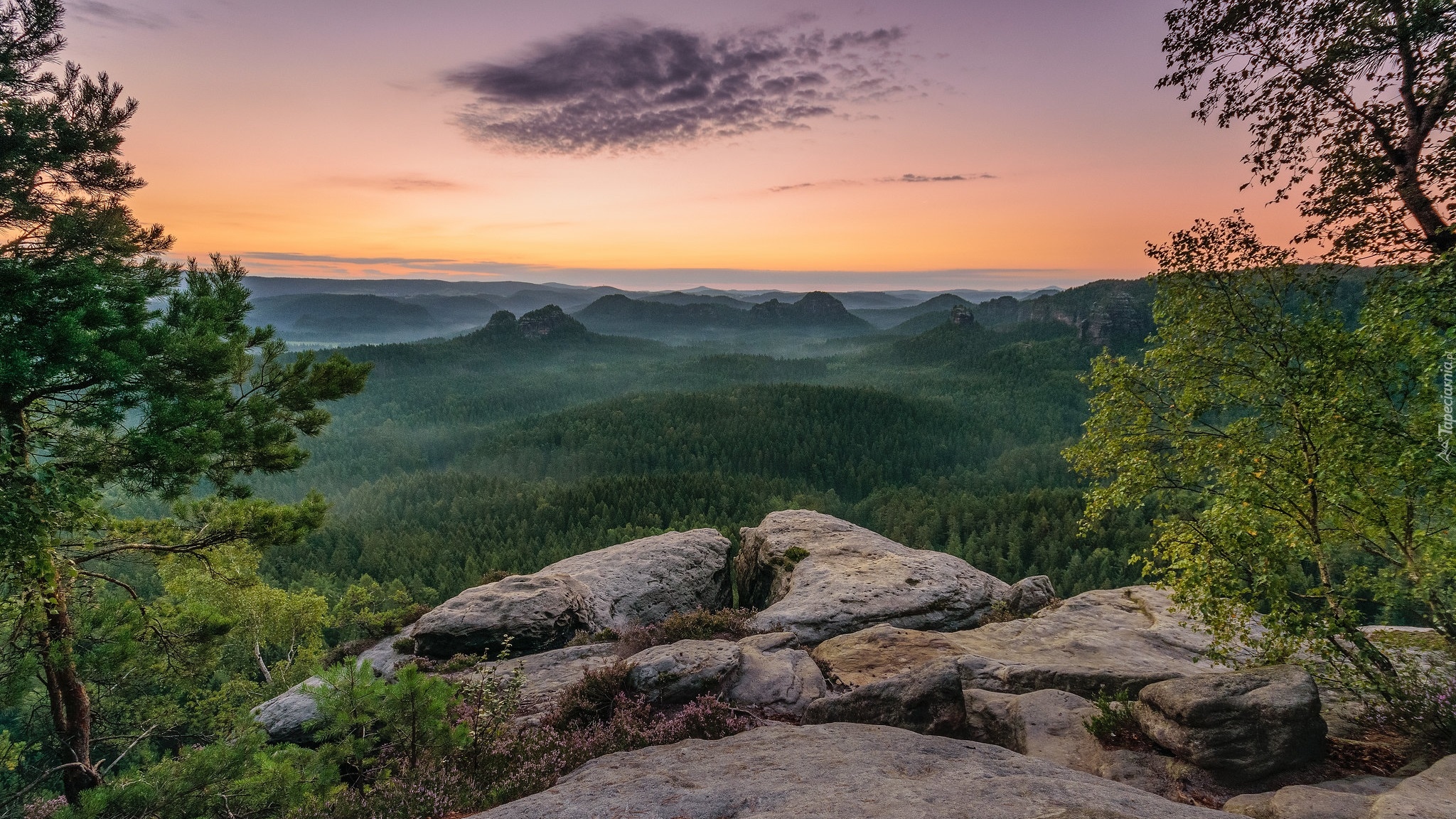 Edytor tapety: Widok ze skał na zalesione góry