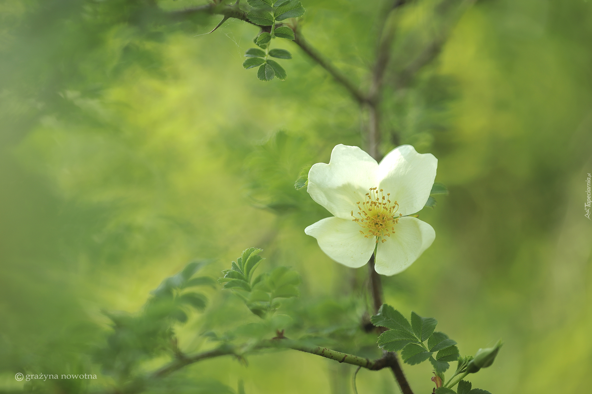 Edytor tapety: Biały kwiat dzikiej róży