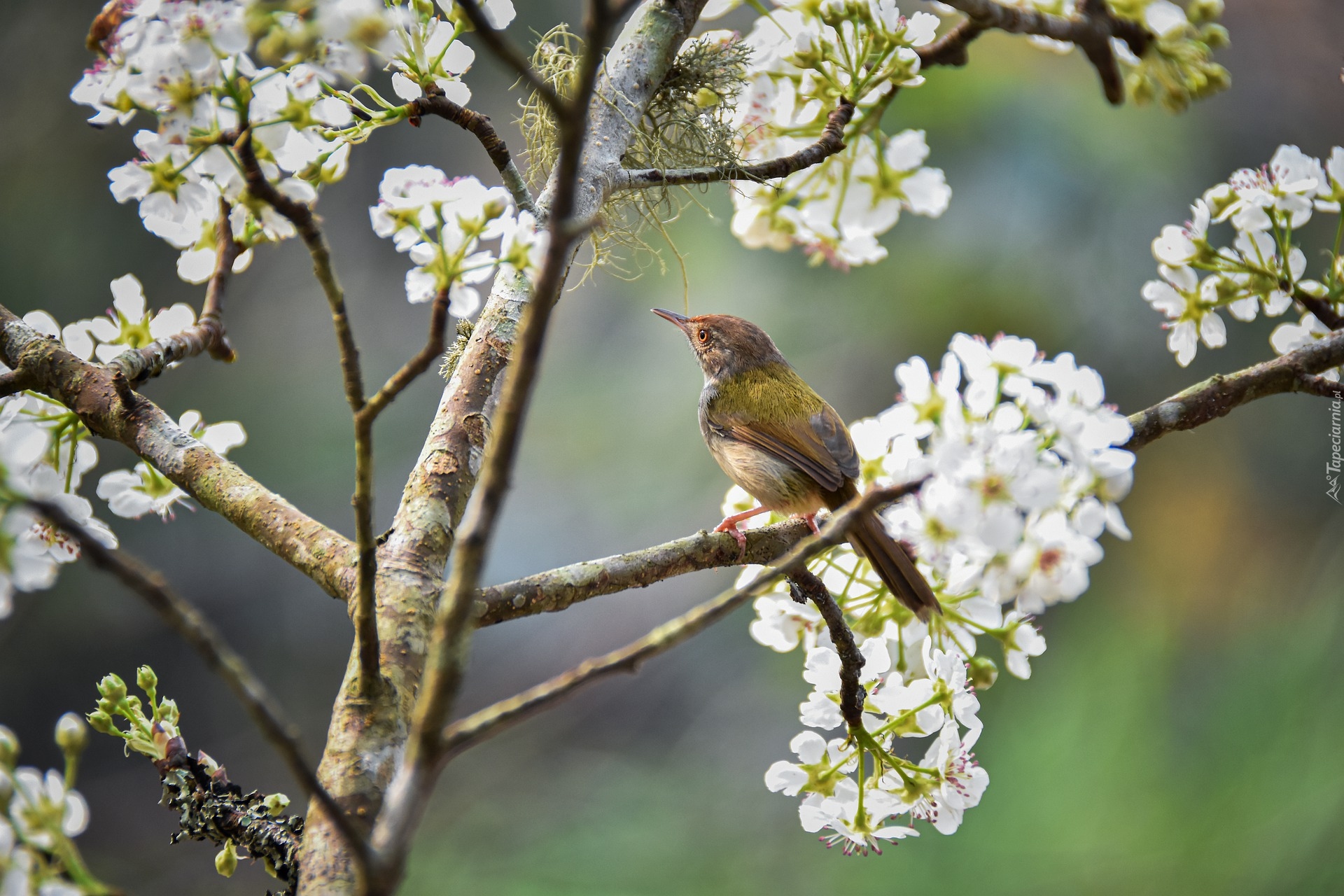 Edytor tapety: Ptak na kwitnącej gałęzi
