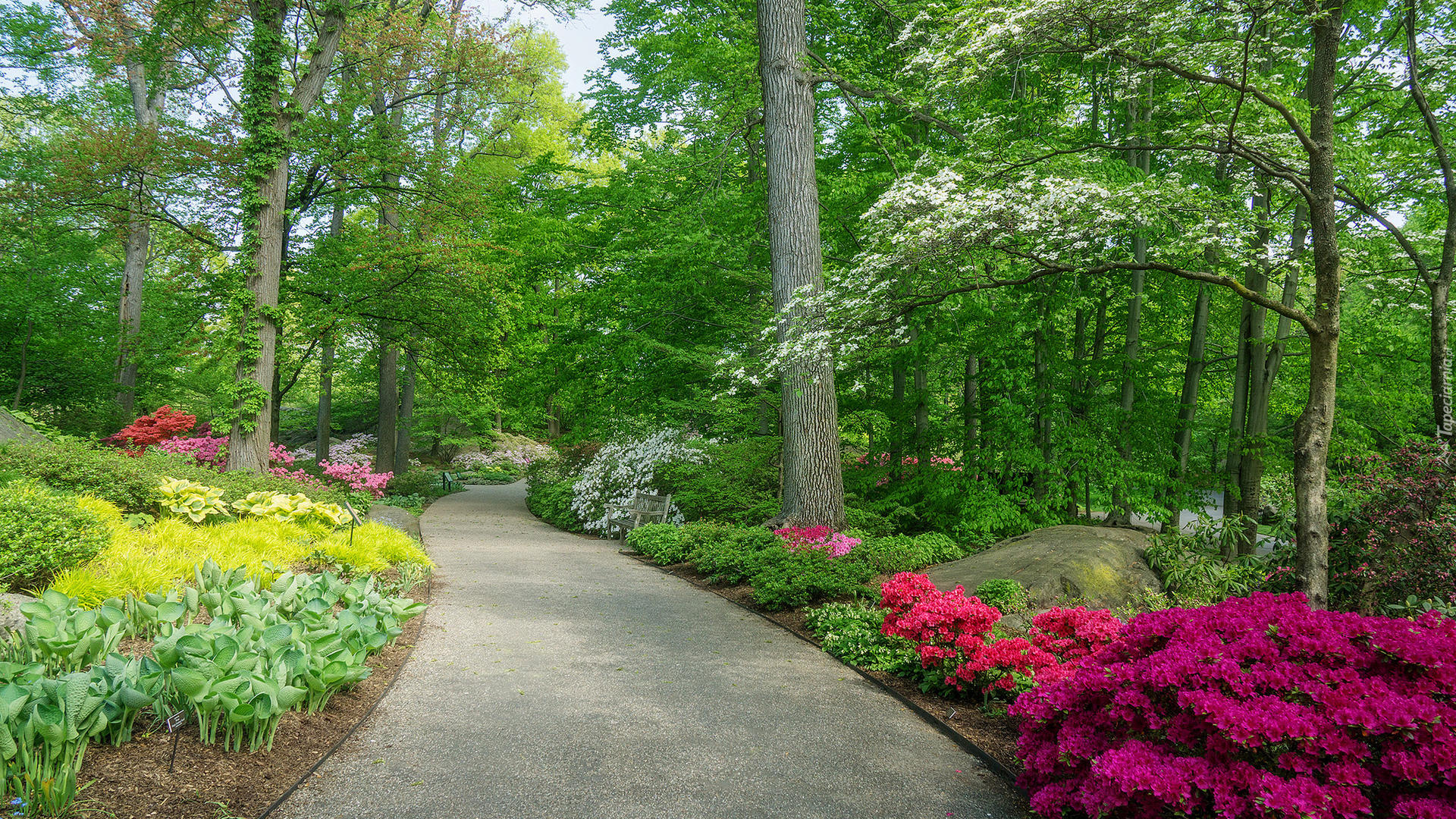 Edytor tapety: Azalie przy drodze w parku